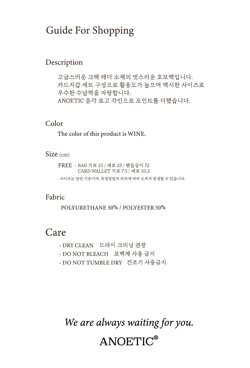 아노에틱 클래식 호보백&카드 지갑 세트 와인