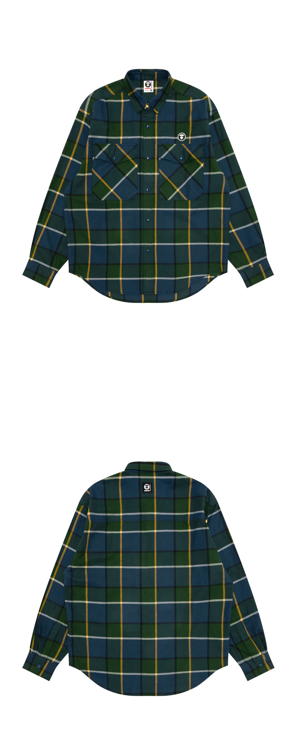체크무늬의 에이프 나우 롱슬리브 셔츠 네이비 옐로우입니다. - 문페이스 로고 디테일 - 체크무늬 - 면 100%