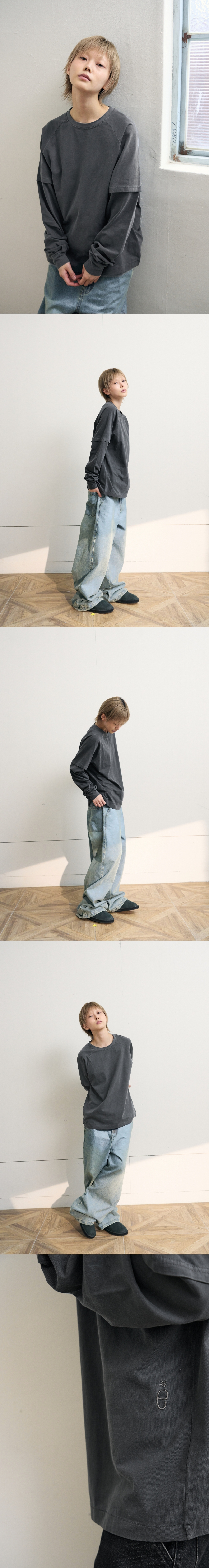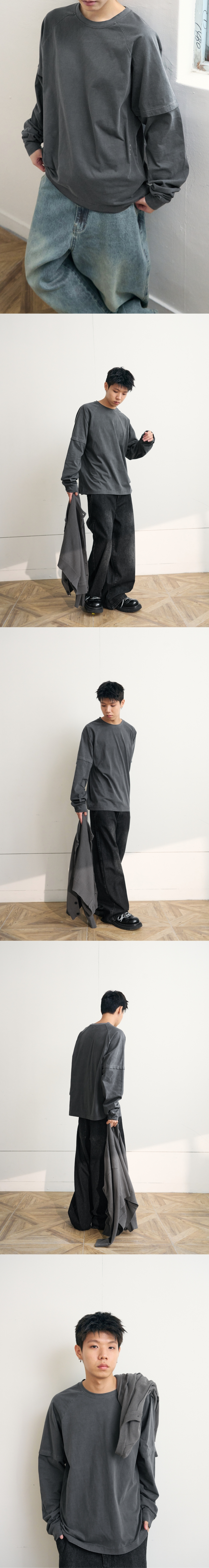 eastserviceshop Double Sleeves Raglan Tee Dying Chacoal