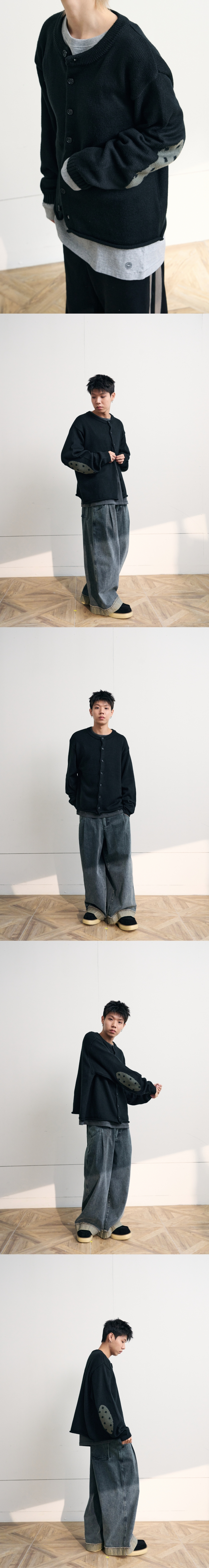 이스트서비스샵 엘보우 도트 니트 가디건 블랙
