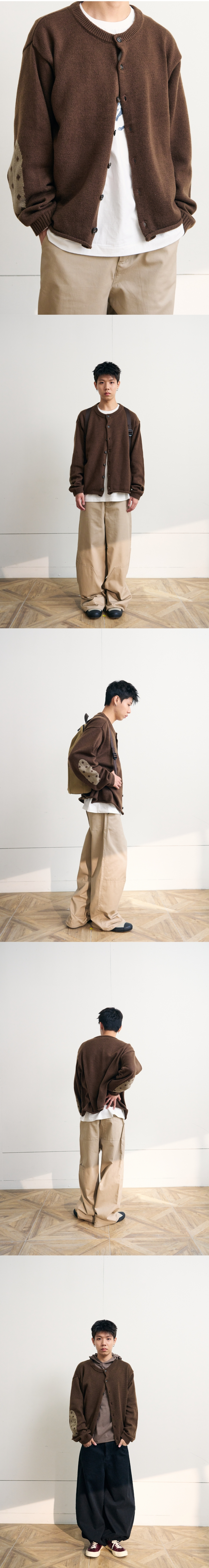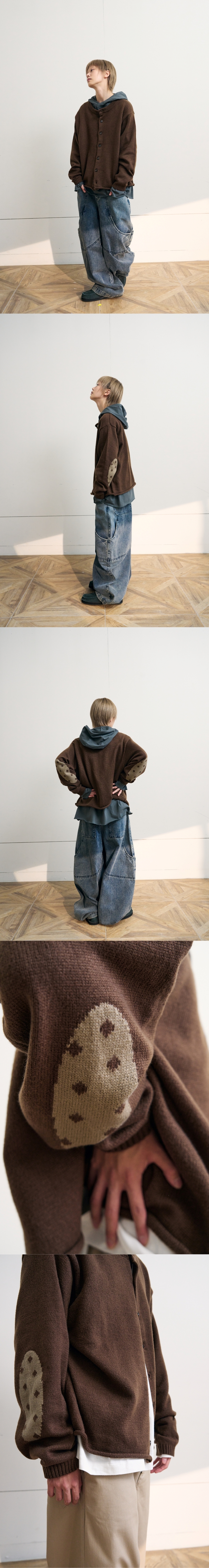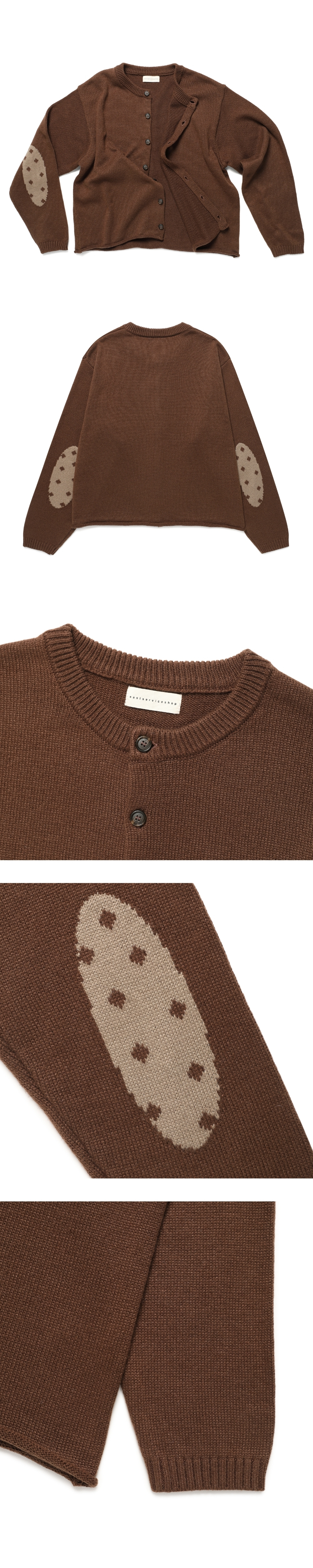 이스트서비스샵 엘보우 도트 니트 가디건 브라운
