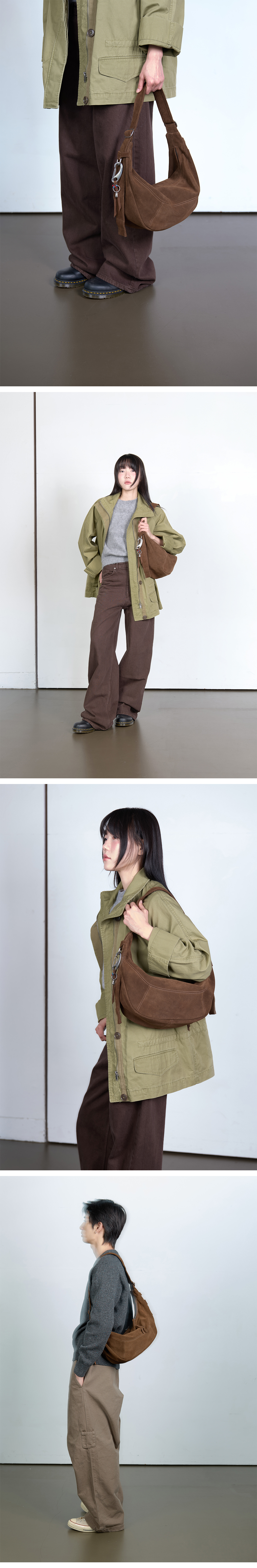 • 스웨이드 특성 상 이염 주의 (밝은 의류 착용 지양) • 여행이나 일상에서 실용적이고 멋스럽게 착용할 수 있는 숄더 크로스백 • 천연 카우 스웨이드로 제작되어 고급스러운 쉐입과 사용 시 스크래치 등에 높은 내구성 제공 • 전면 입체 패턴 구조와 스티치 디테일로 디자인 포인트 • 숄더백과 크로스백 두 가지 방식으로 착용 가능 • 사이드 미니 포켓을 활용하여 이어폰, 립밤, 카드 등 작은 소지품 별도 수납 • 니켈 지퍼로 내구성과 고급스러움 강조 • 키링 및 악세서리를 걸 수 있는 D링 디테일 • 양쪽 사이드에 버클을 이용하여 자유로운 스트랩 길이 조절 • 후면 포켓과 내부 지퍼 포켓으로 소지품 구분 수납