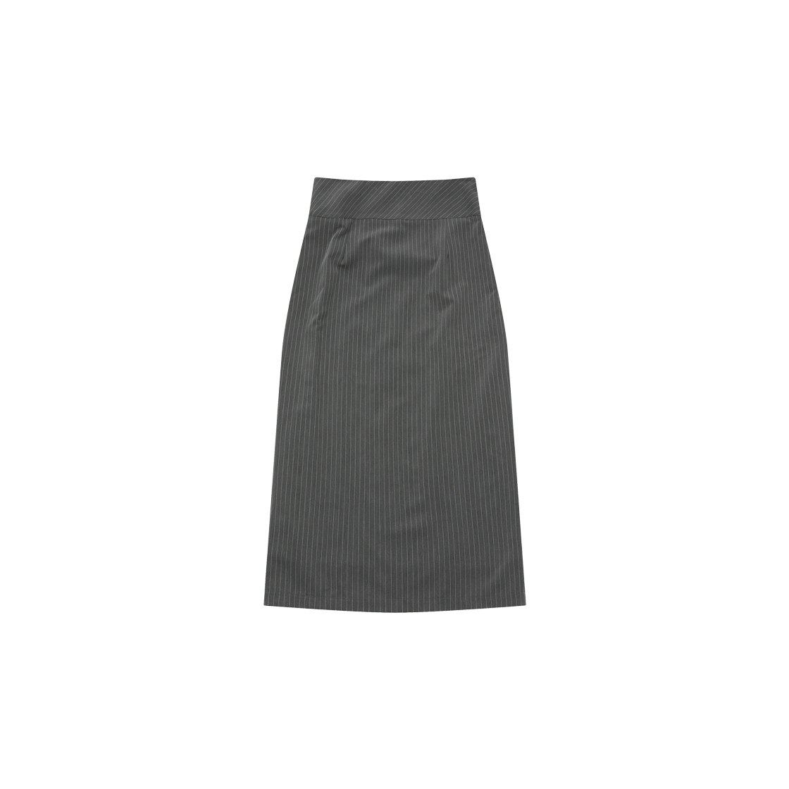 MUCENT Tilt Stripe Button Point Long Skirt Charcoal
