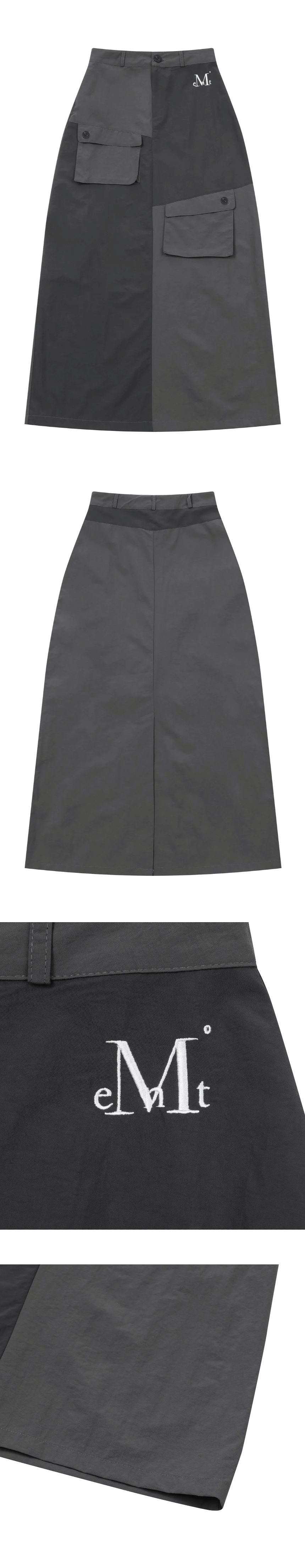 무센트 쉐이드 셋업 배색 포켓 롱 스커트 차콜