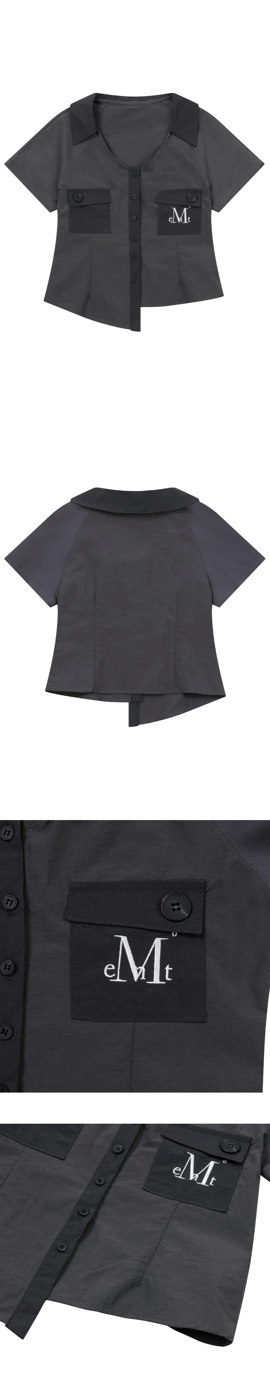 무센트 쉐이드 셋업 배색 포켓 언발란스 셔츠 차콜