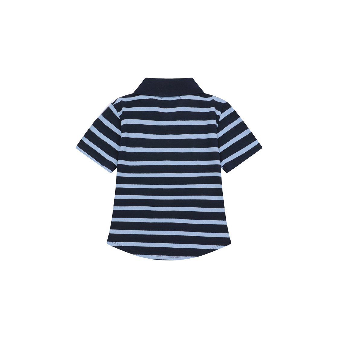 MUCENT Daria Stripe Slim Fit Collar Half T Navy