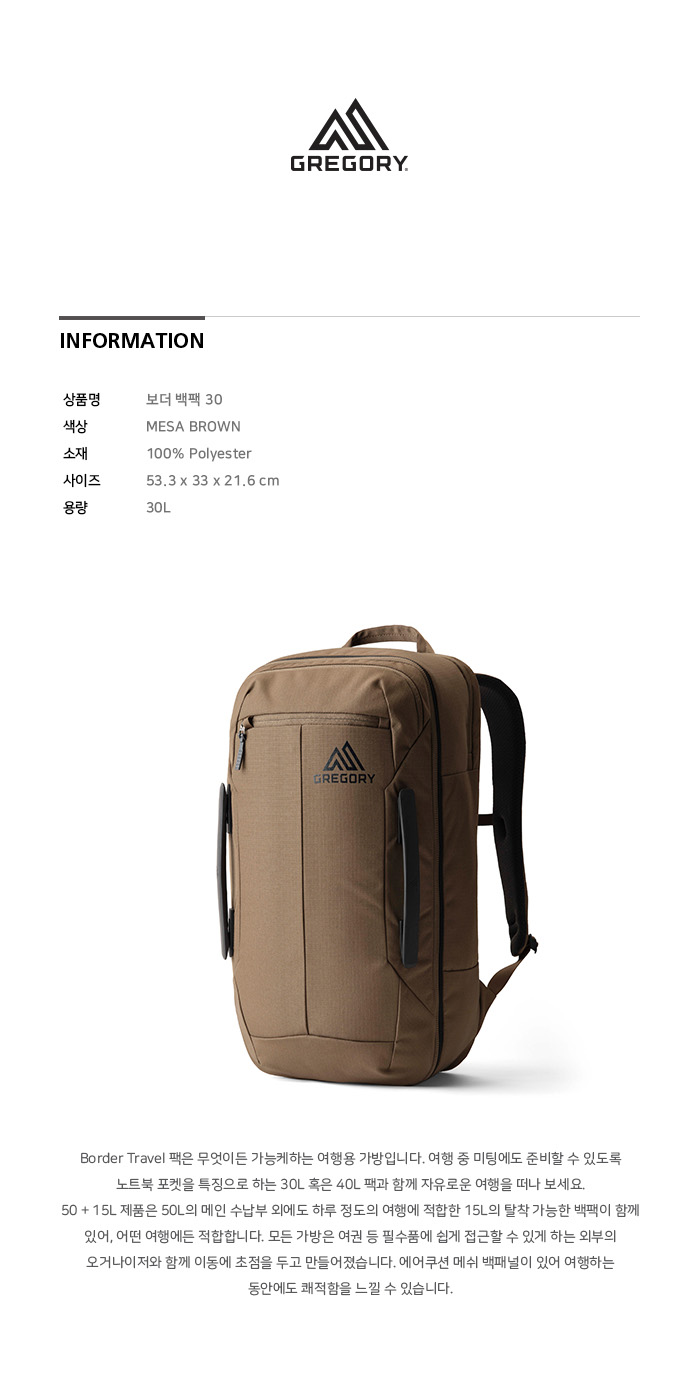 그레고리 보더 백팩 30 메사 브라운 (41J23020) 30L