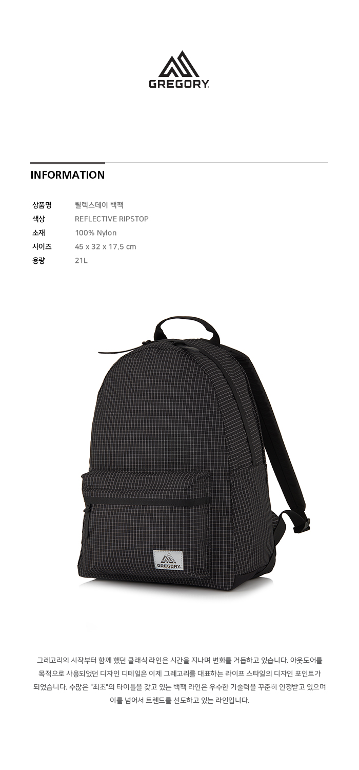 그레고리 릴렉스데이 백팩 리플렉티브 립스탑 (09JT1452) 21L