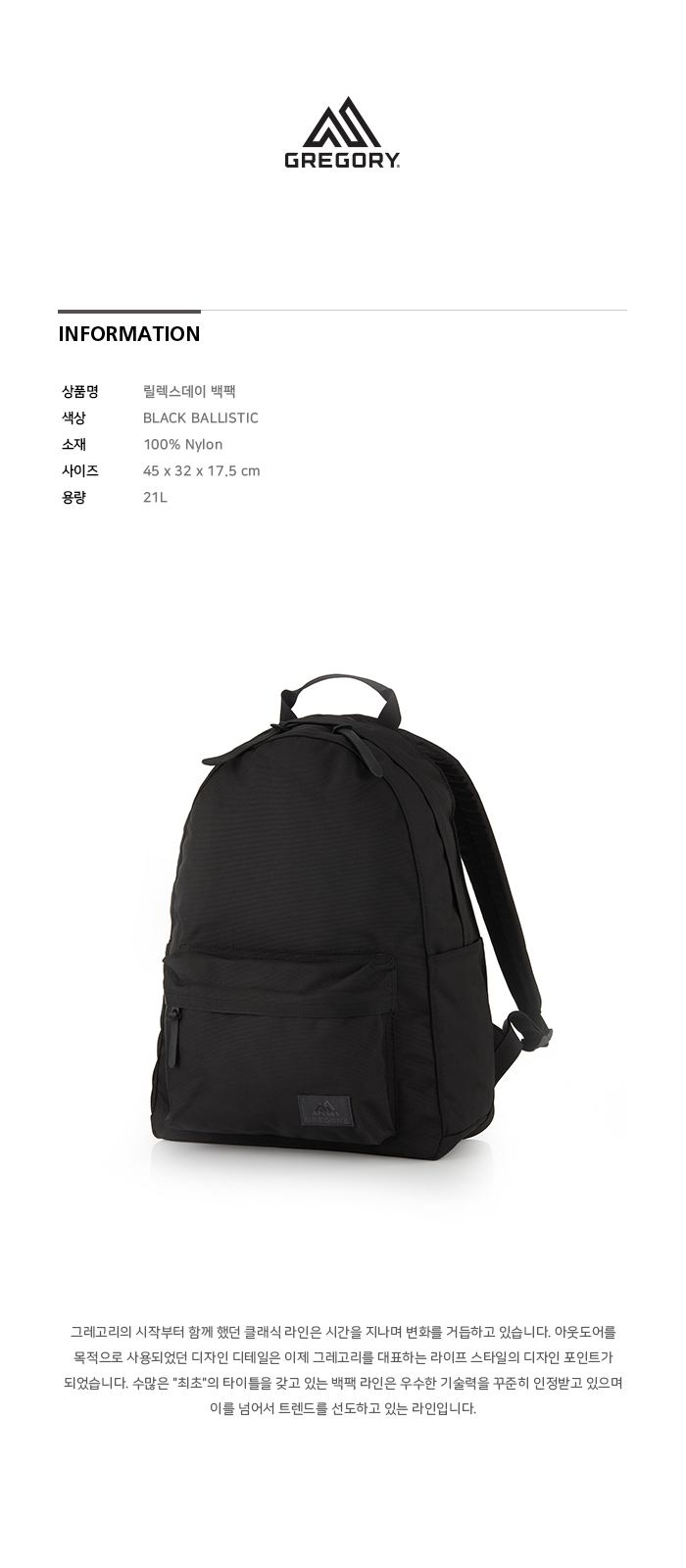그레고리 릴렉스데이 백팩 블랙 발리스틱 (09J09452) 21L