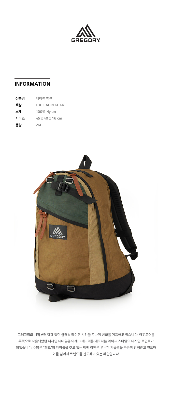 그레고리 데이팩 로그 캐빈 카키 (09JT3024) 26L 백팩
