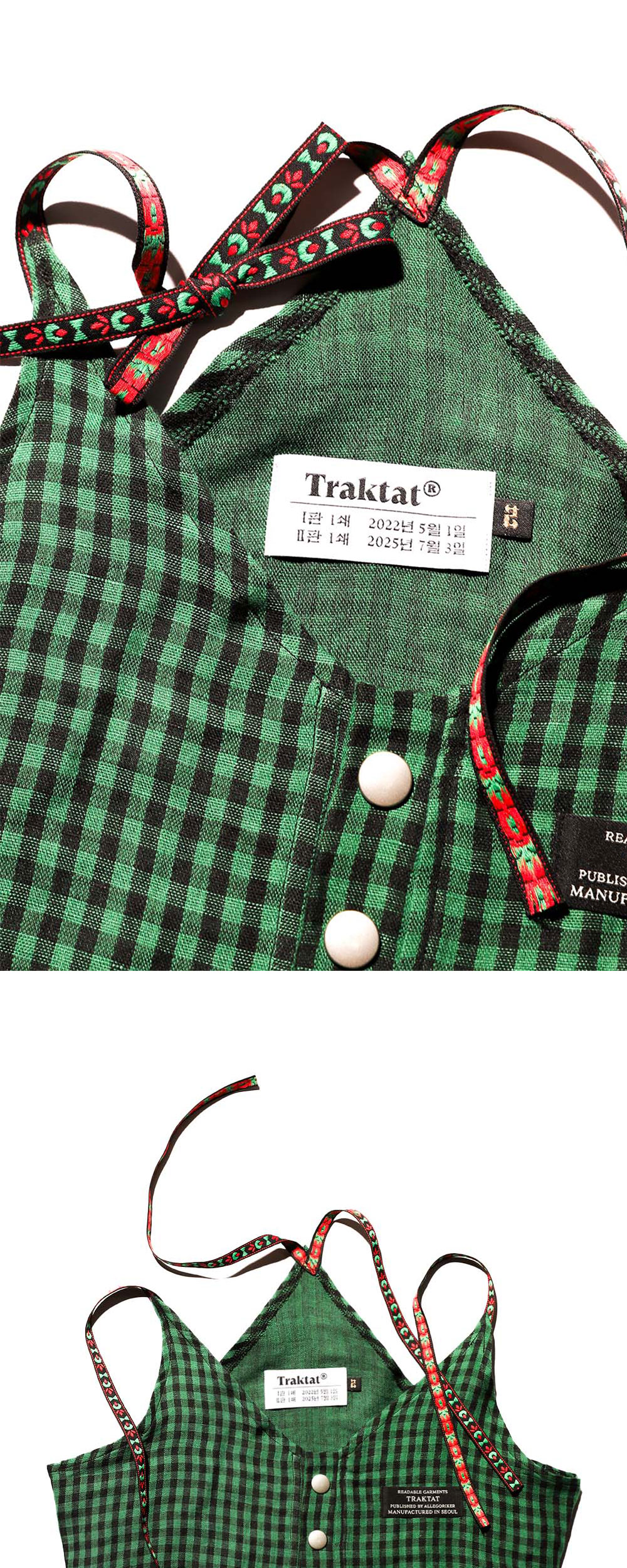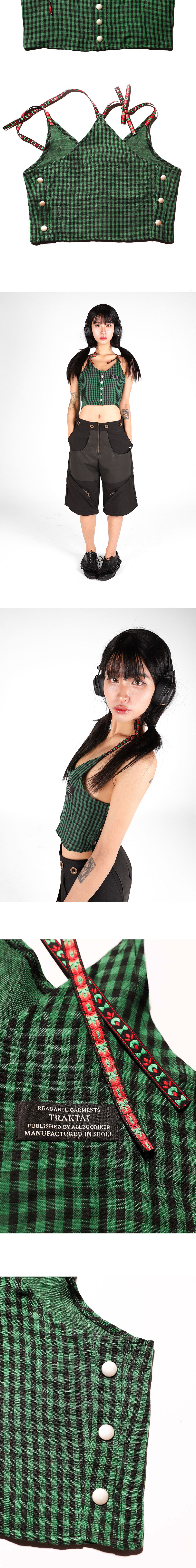 Designer's notes ⟡ The adoption of the Buffalo check pattern and the placement of the brand label along the chest line emulate the form of a school uniform. ⟡ While imitating the school uniform, the design allows for a high degree of freedom in wearing, depicting the process by which social constraints on the body are dismantled. Made by Allegoriker ® Designed by Allegoriker ©