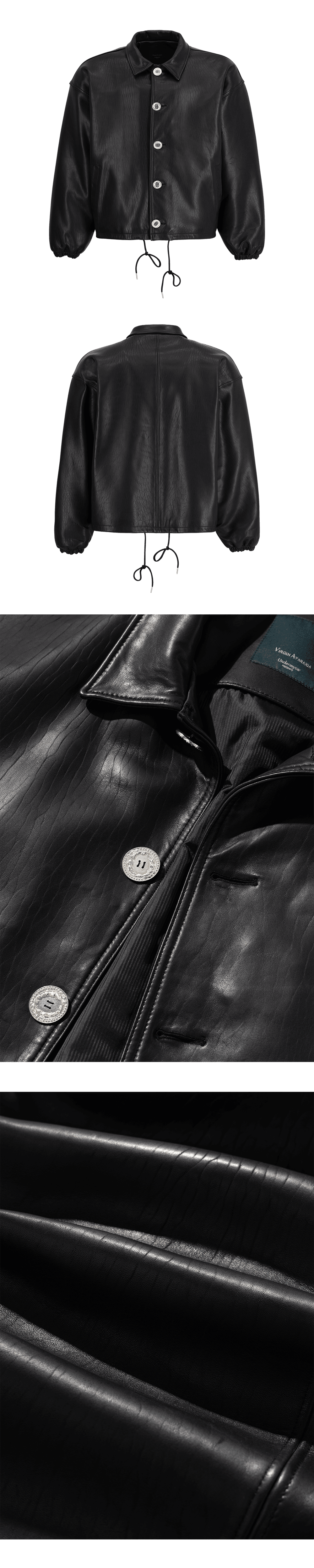 Undermycar 25FW Floral Silver Button Leather Coach Jacket Black