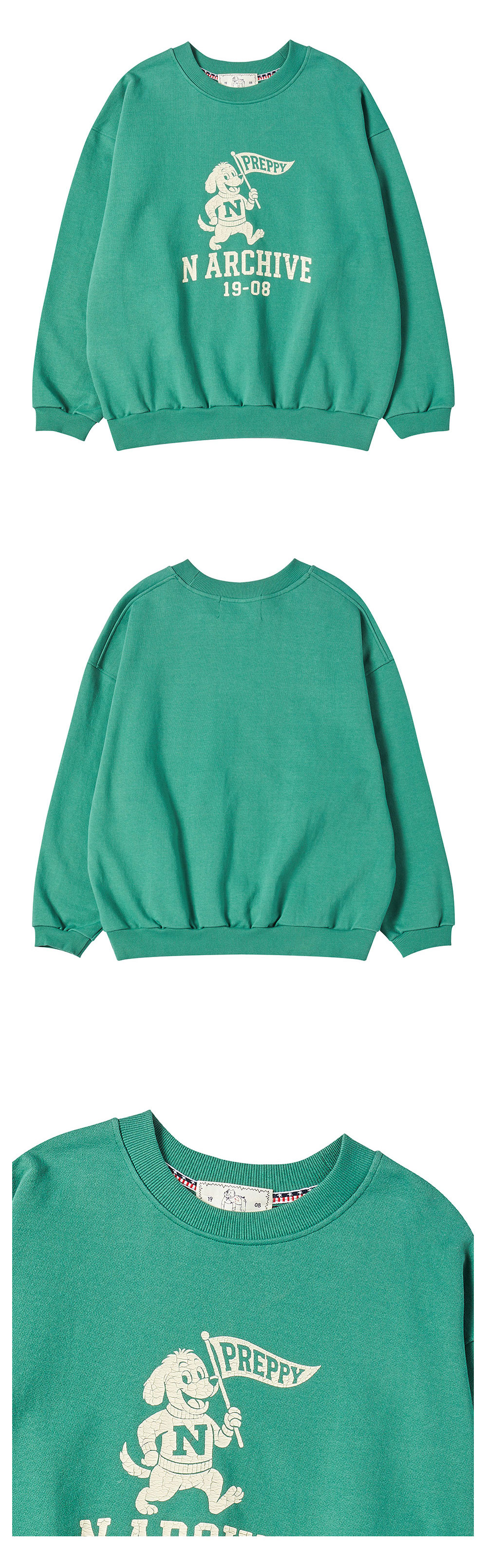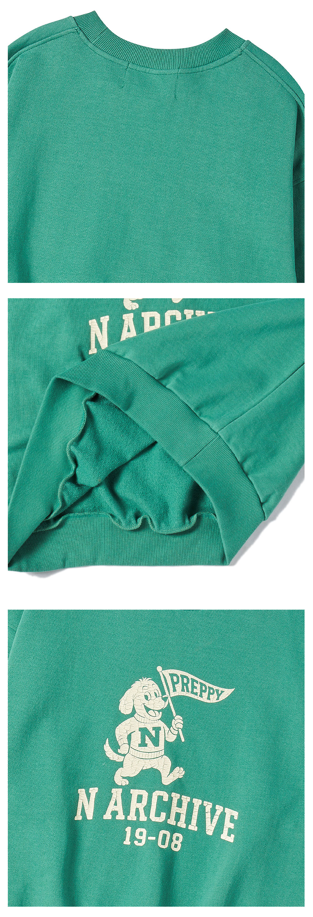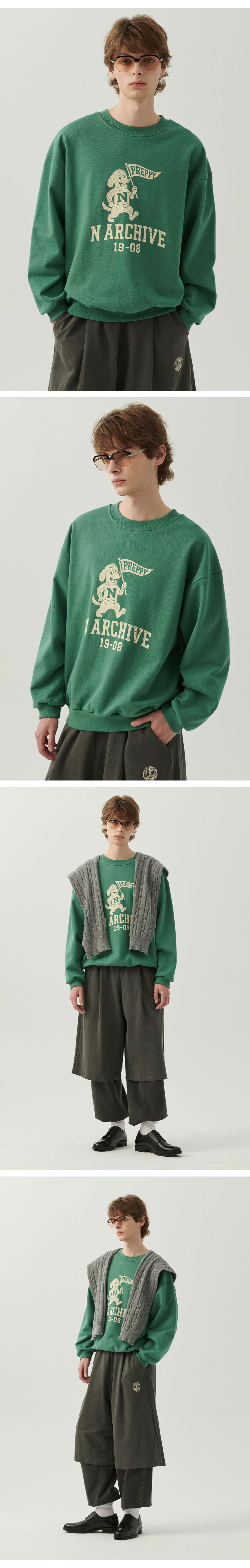 엔 아카이브 빈티지 칼리지 로고 스웨트 셔츠 그린