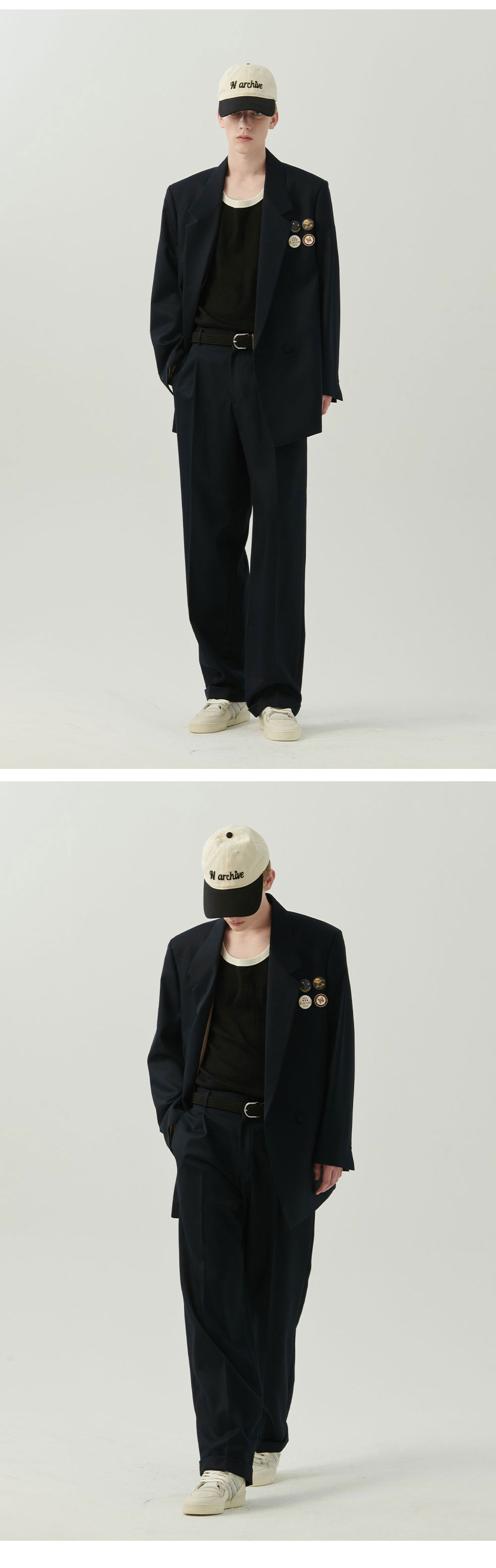 엔 아카이브 소프트 개버딘 이지 테일러드 울 팬츠 네이비