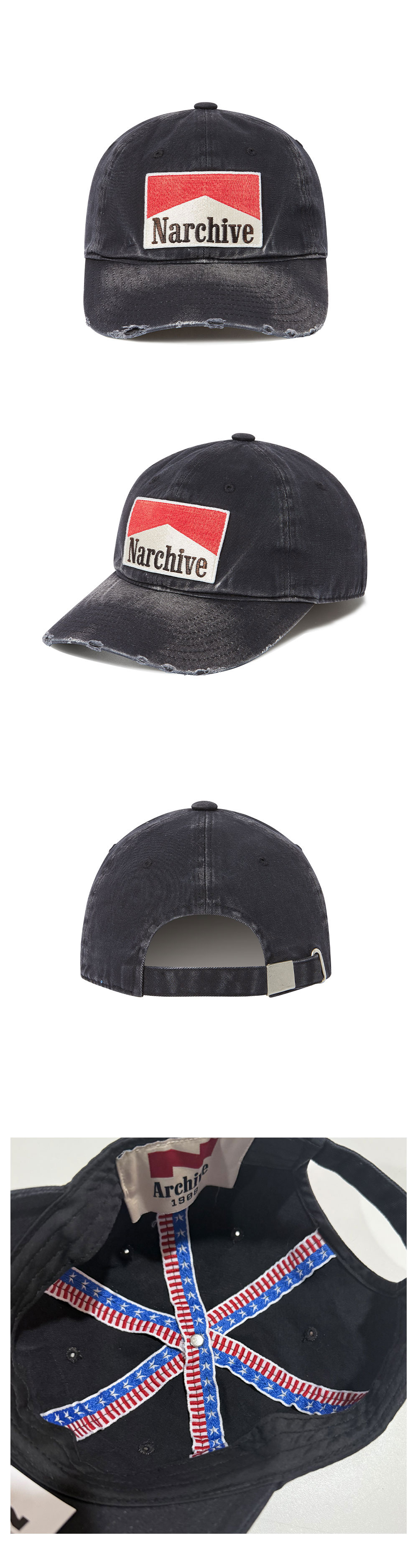 ㆍ고밀도의 코튼 원단으로 제작된 빈티지 워싱 로고 볼캡 ㆍ빈티지 워싱을 통해 그런지한 무드 표현 ㆍ고밀도의 자수를 통한 클래식 로고의 표현 ㆍ빈티지 테이프로 마감한 모자의 안쪽 디테일 ㆍ사이즈 조절 밴드와 버클 디테일 ㆍ개발된 패턴을 통해 편안하면서 여유있는 실루엣으로 얼굴이 작아보이는 효과를 더함 ㆍ남녀공용 착용