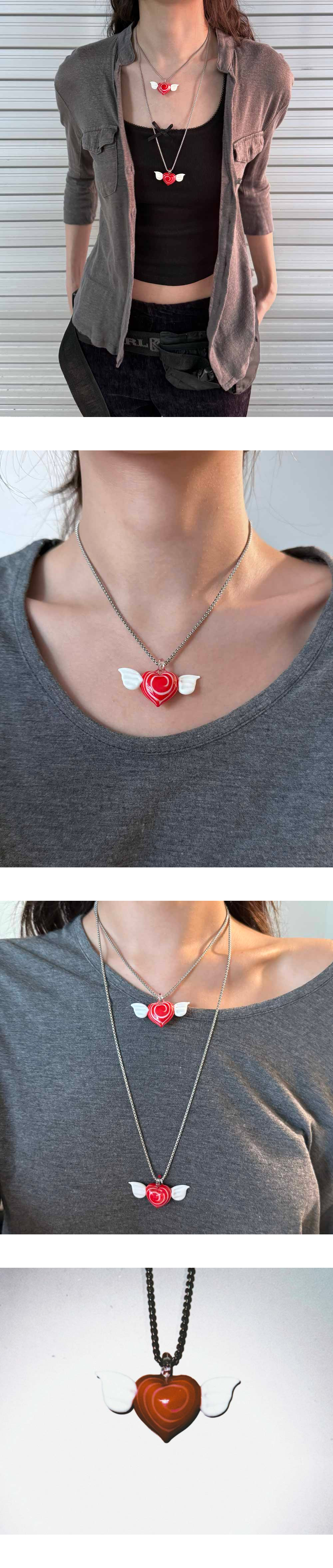 산리 레드 엔젤 하트 네클리스 숏 버전