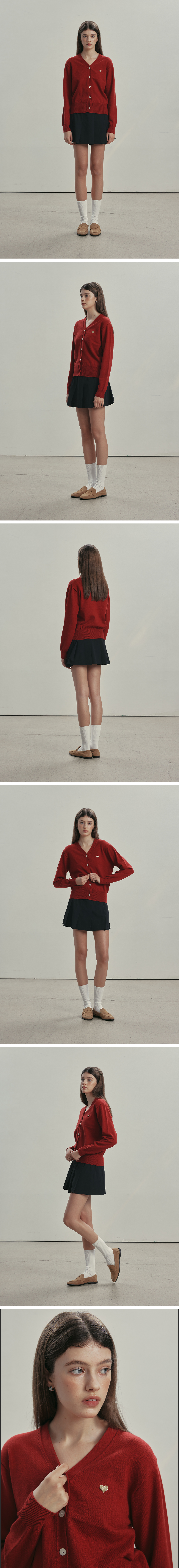 Knitted W Basic Essential Washable V-Neck Cardigan Red