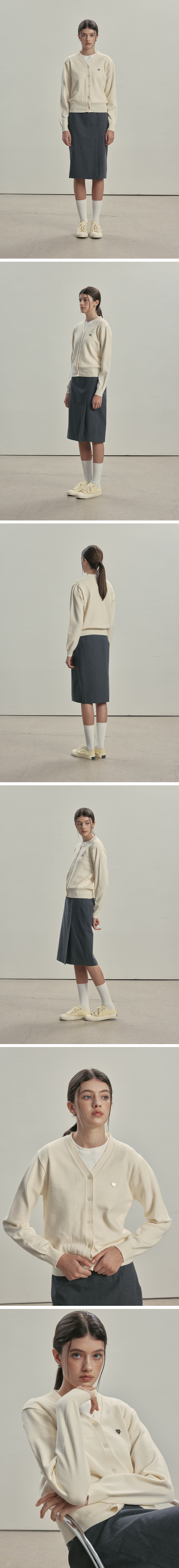 Knitted W Basic Essential Washable V-Neck Cardigan Ivory