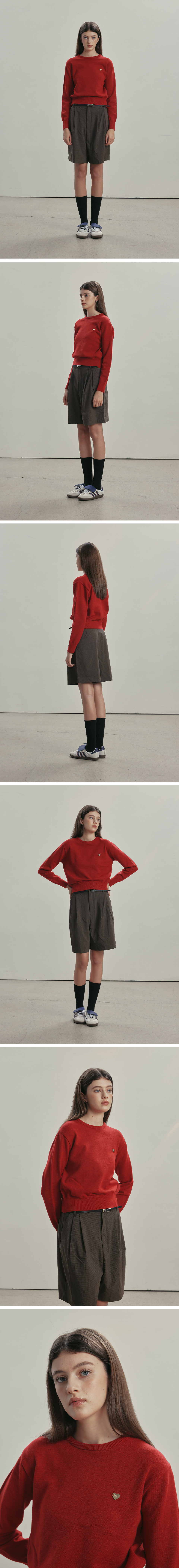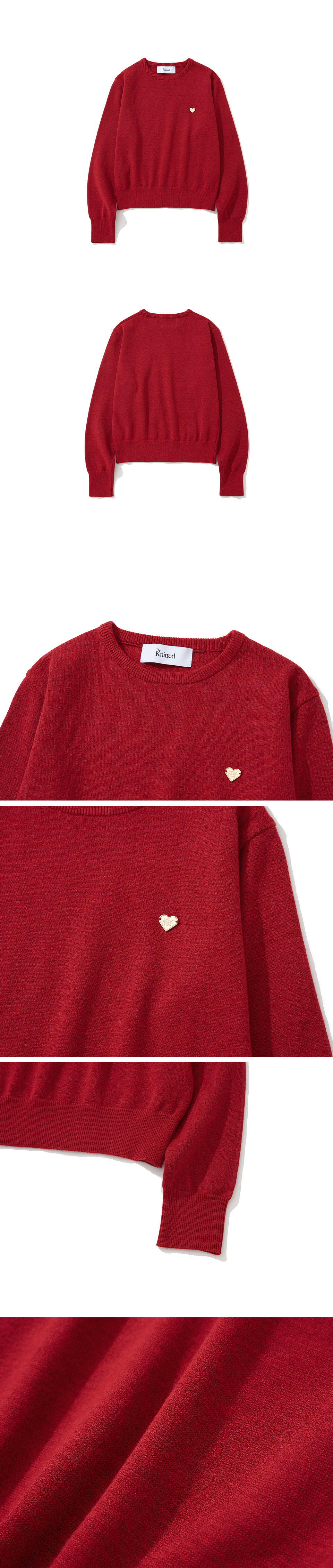 니티드 여성 베이직 에센셜 워셔블 라운드 니트 레드