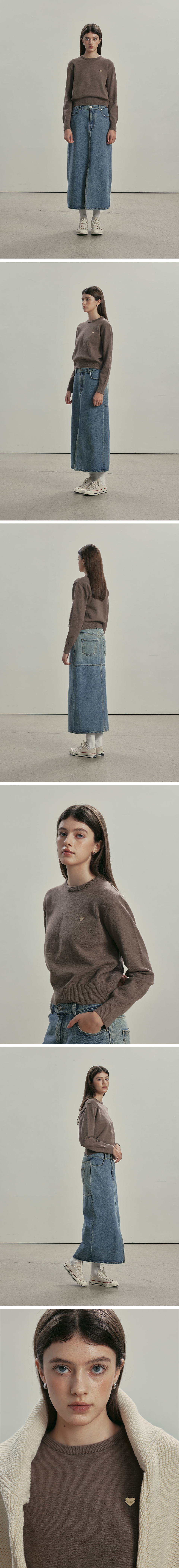 니티드 여성 베이직 에센셜 워셔블 라운드 니트 모카