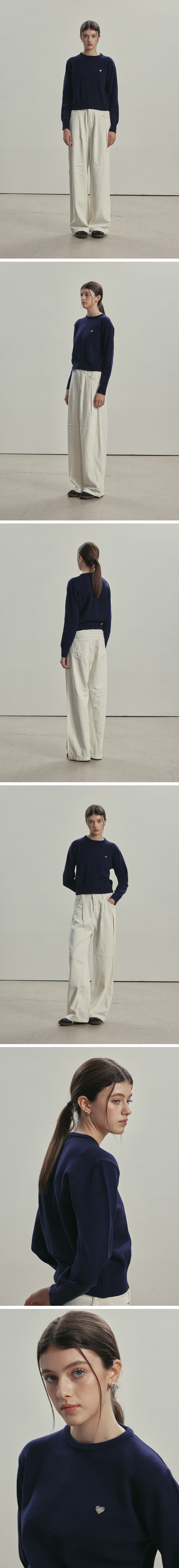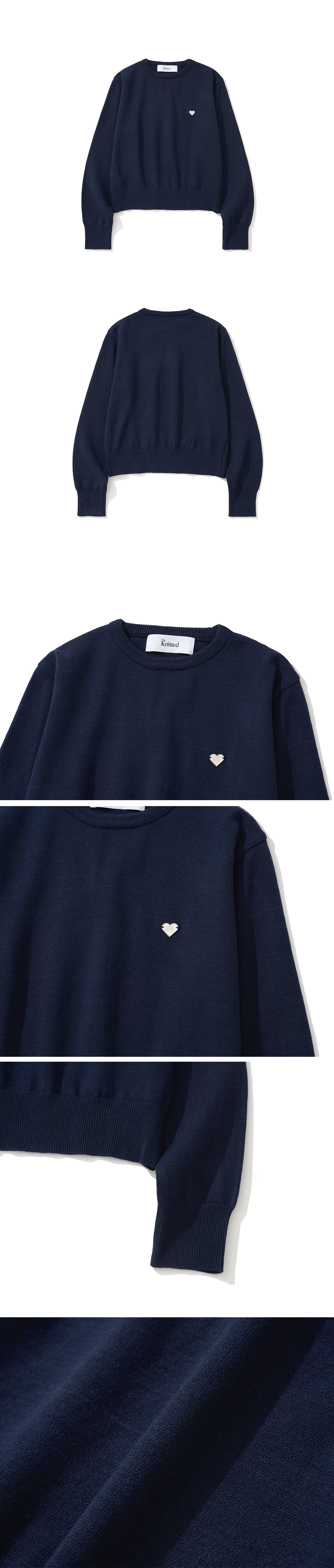 니티드 여성 베이직 에센셜 워셔블 라운드 니트 네이비