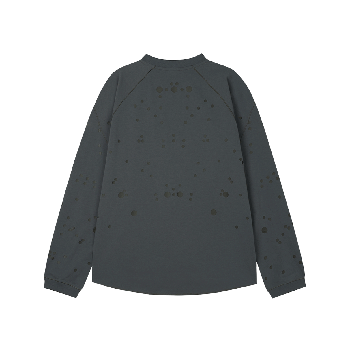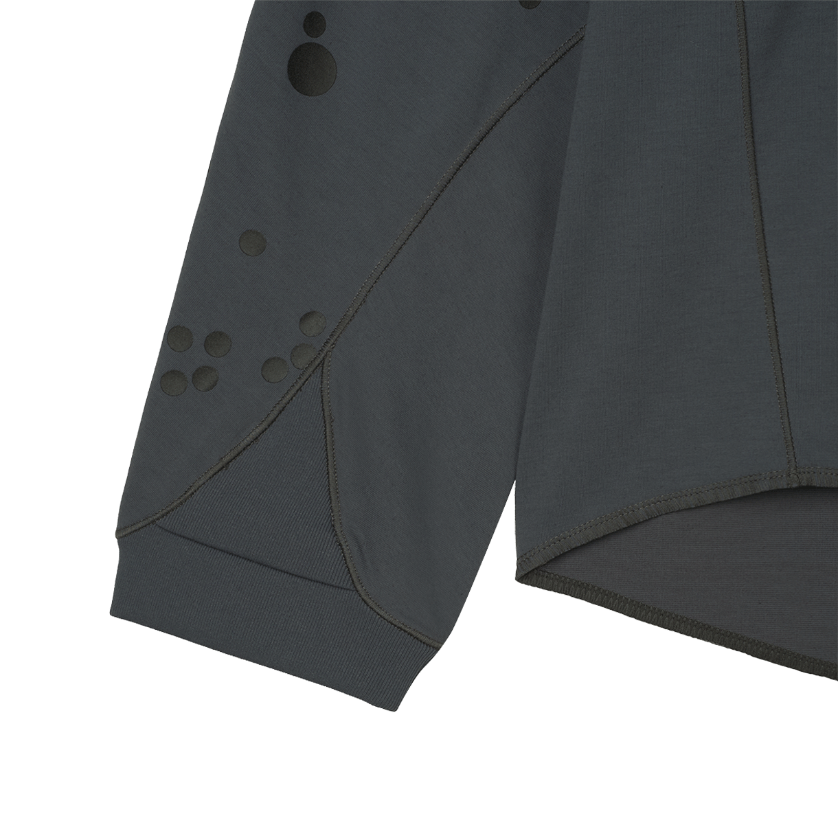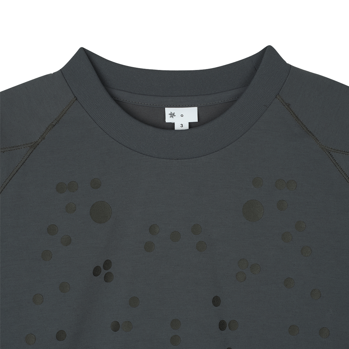 차콜 그레이 톤의 골드윈 제로 그래픽 롱슬리브 티셔츠 딥 차콜입니다. - 쾌적한 착용감을 제공하는 기능성 폴리 혼방 소재 - 움직임을 고려한 절개형 소매 디자인 - 전면과 소매에 제로 그래픽 디테일 - 소매 밑단 시보리 마감