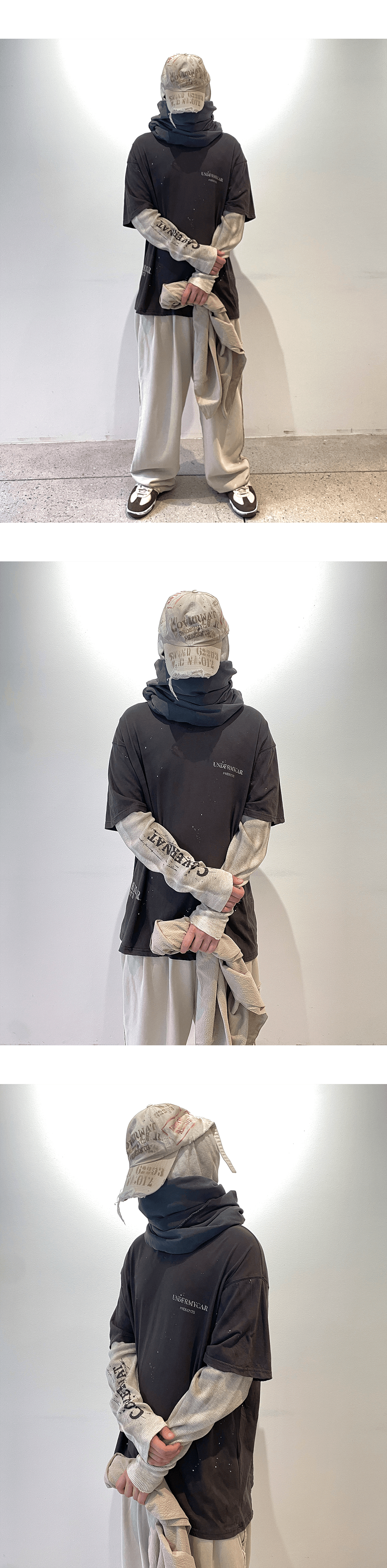 커버낫 X 언더마이카 와플 레이어드 레터 그래픽 롱슬리브