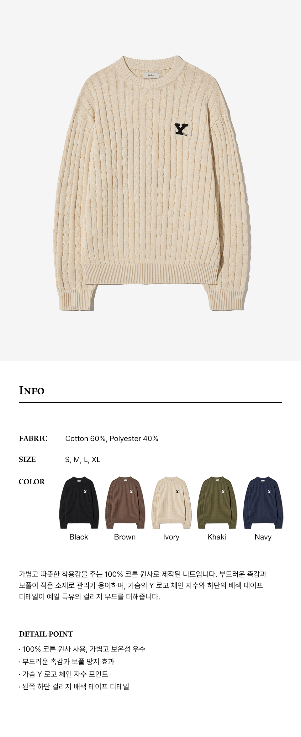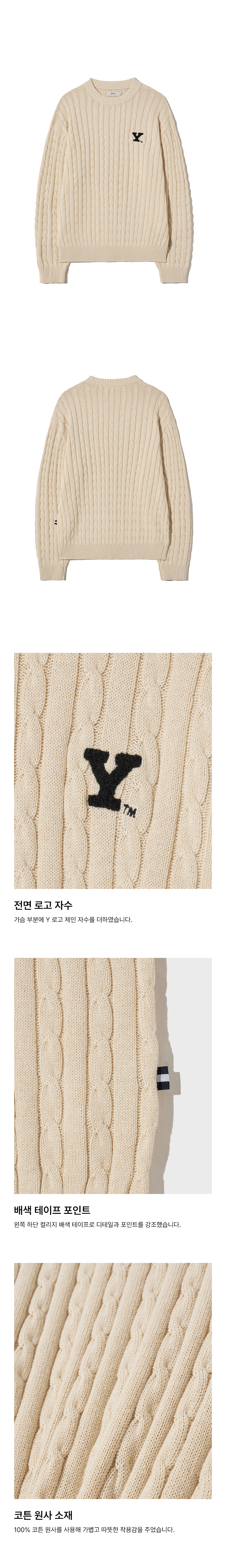 예일 Y로고 케이블 라운드 니트_아이보리