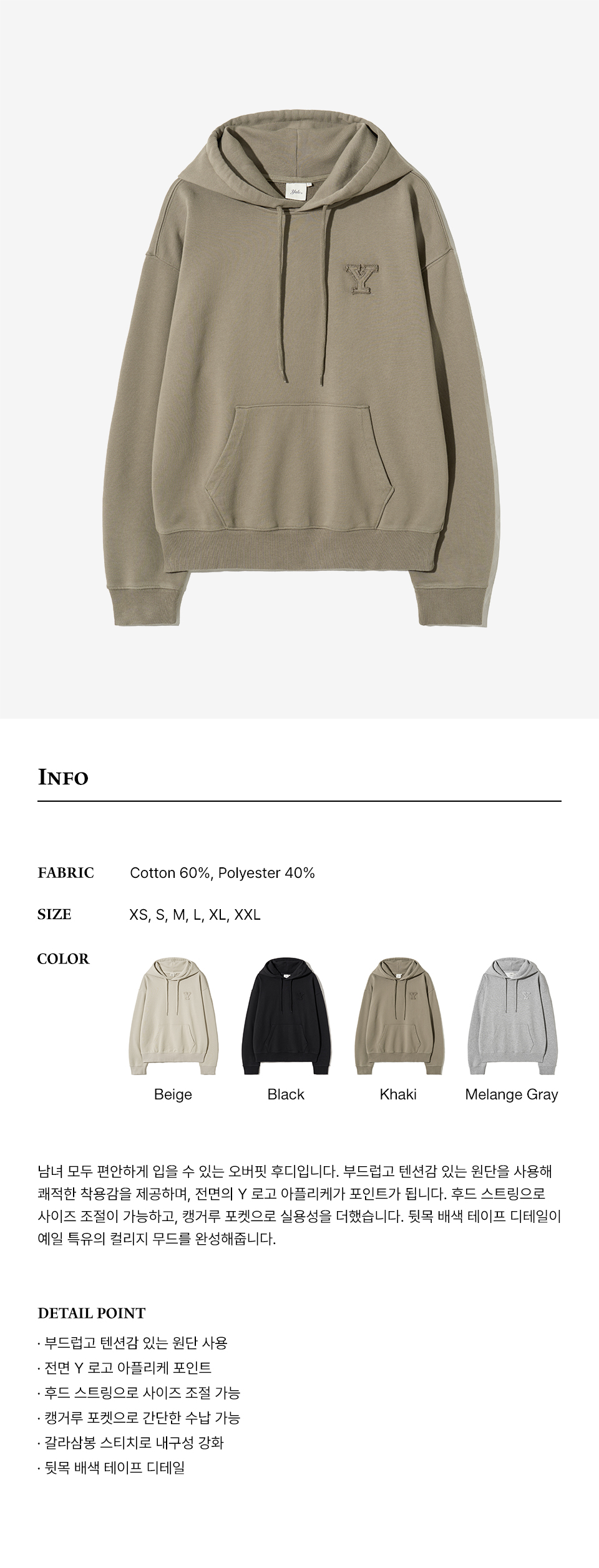 예일 Y로고 아플리케 후드_카키