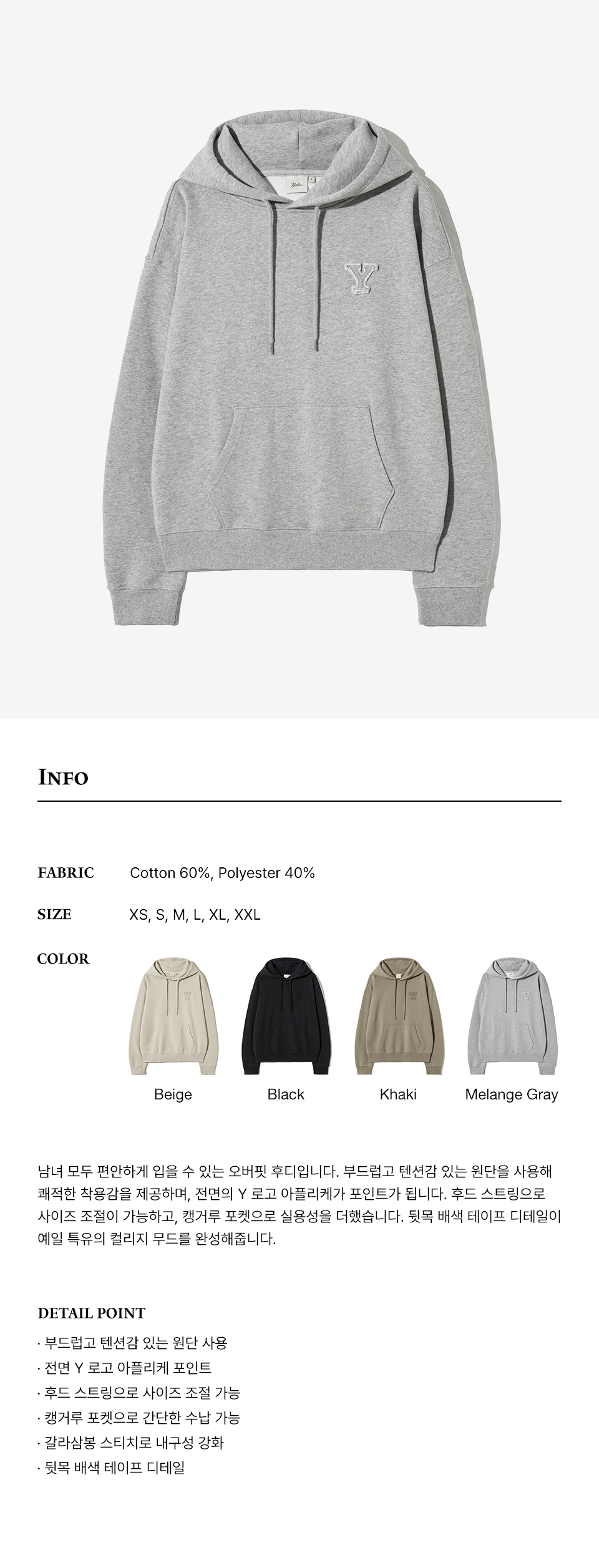 예일 Y로고 아플리케 후드_그레이