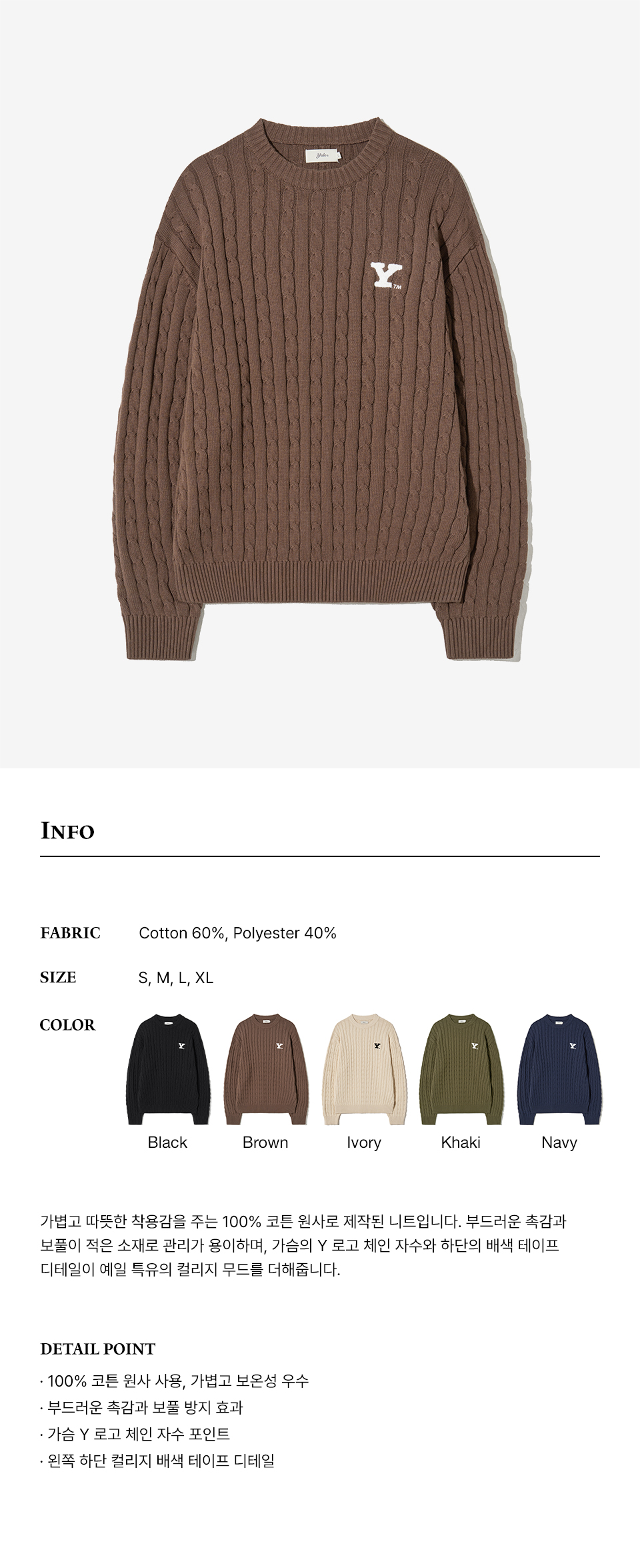 예일 Y로고 케이블 라운드 니트_브라운