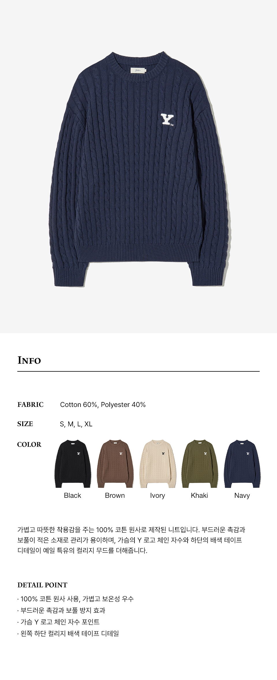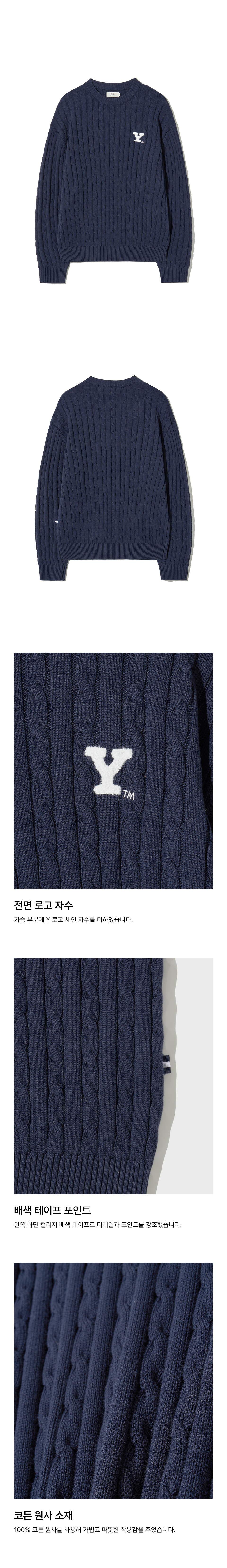 예일 Y로고 케이블 라운드 니트_네이비