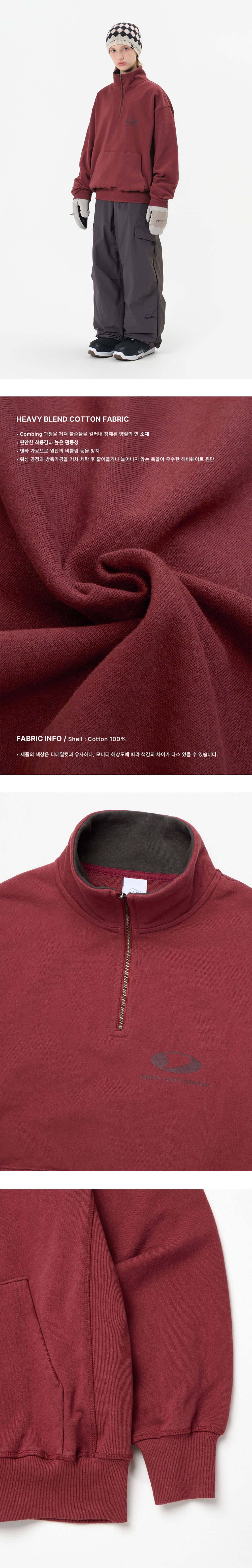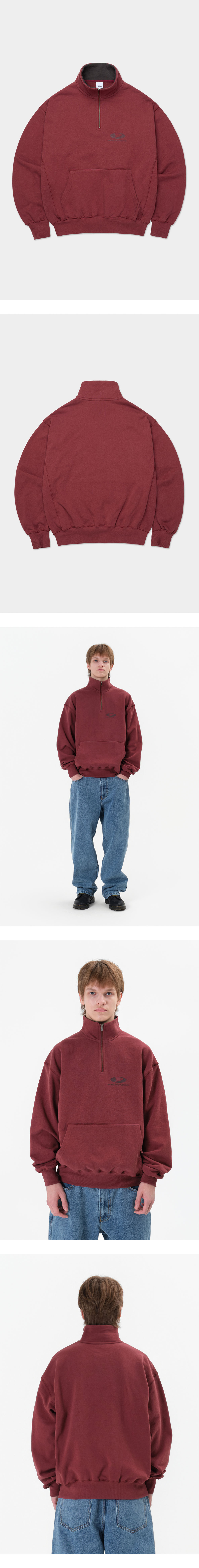 디미토 서클 로고 하프 집 스웻셔츠 버건디