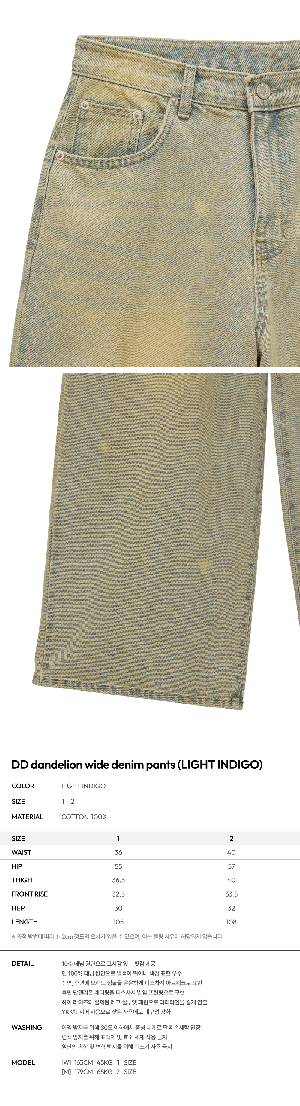 단델 단델리온 와이드 데님 팬츠 라이트 인디고