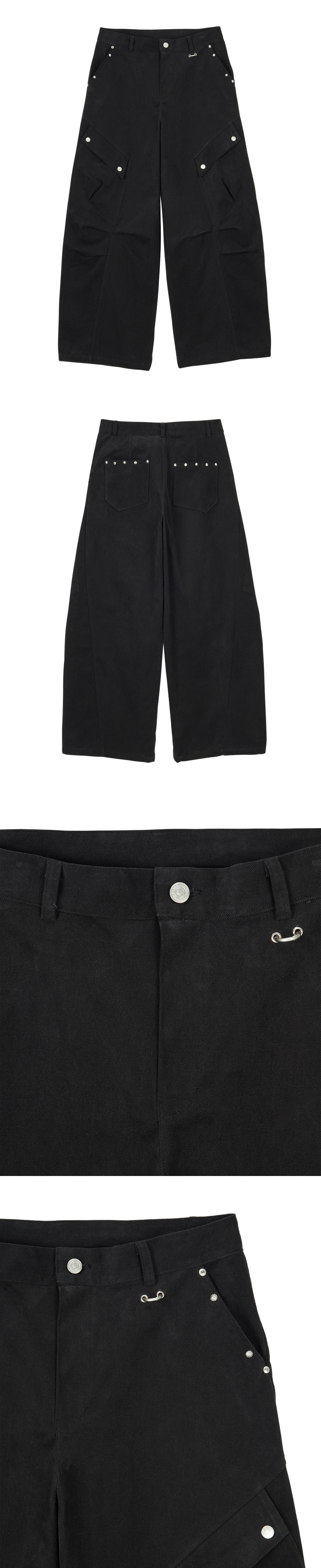 단델 스터디드 핀턱 카고 팬츠 블