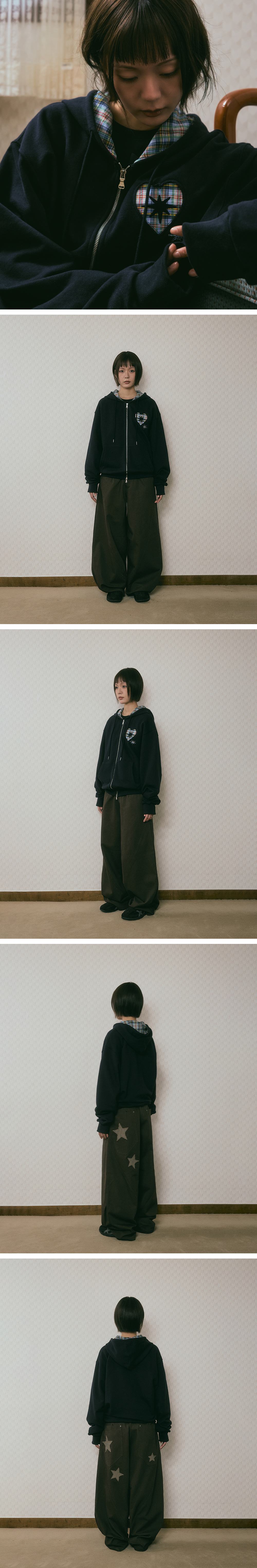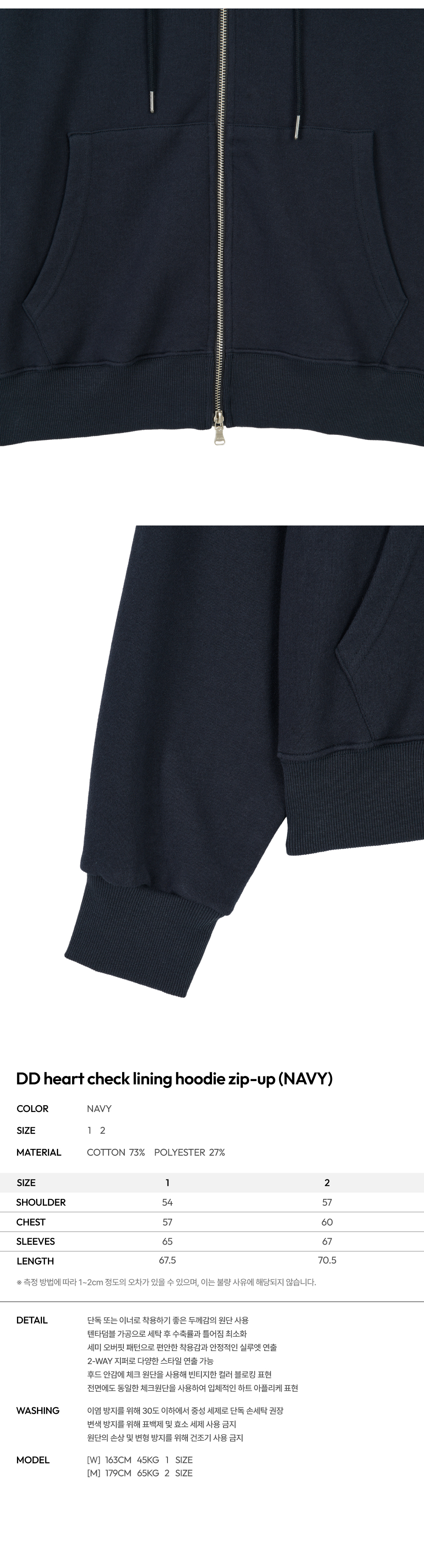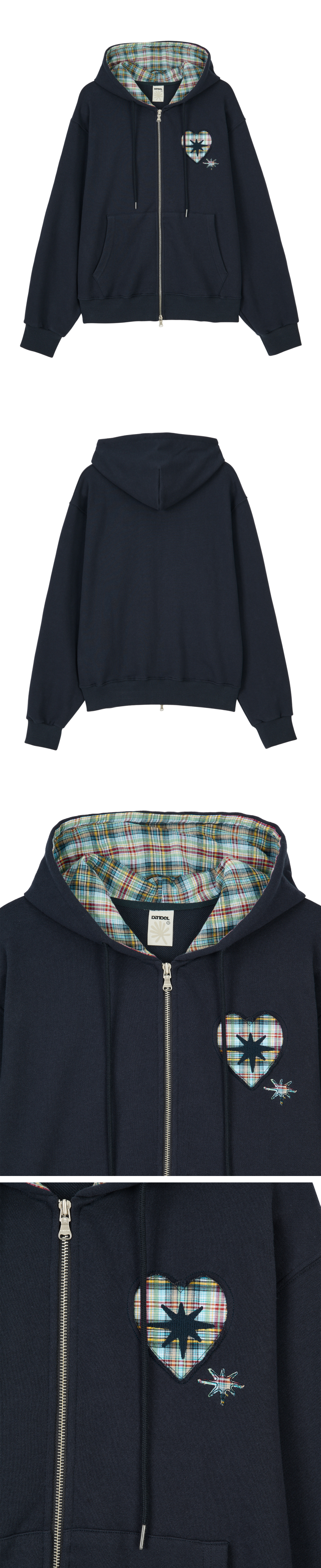 DANDEL Heart Check Lining Hoodie Zip-Up Navy
