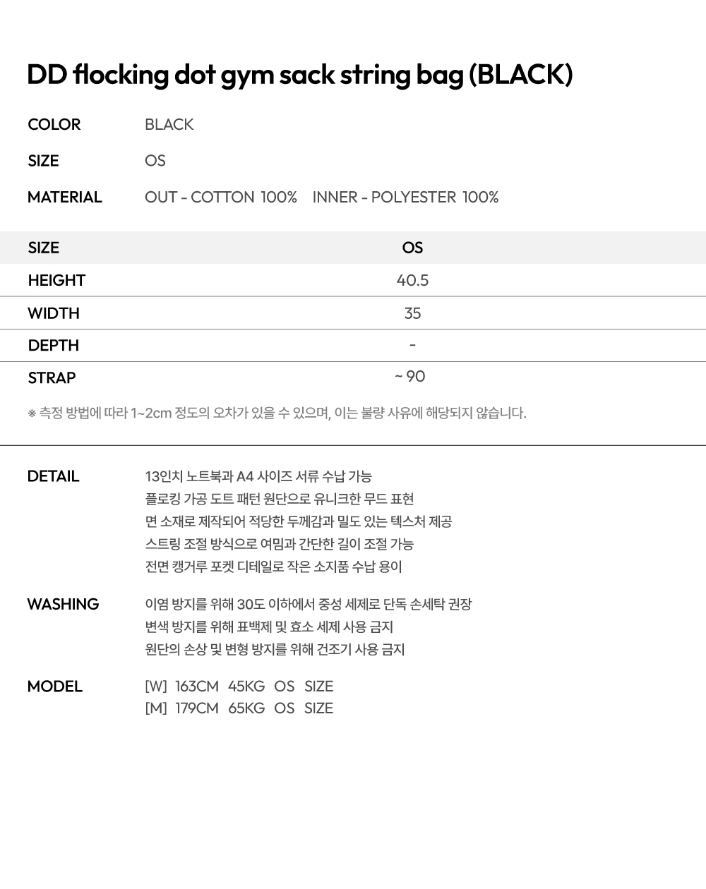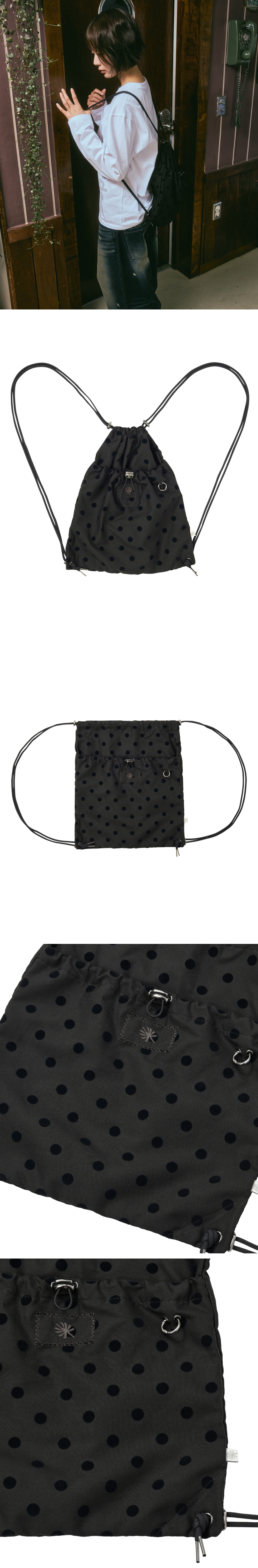 단델 플로킹 도트 짐색 스트링 백 블랙