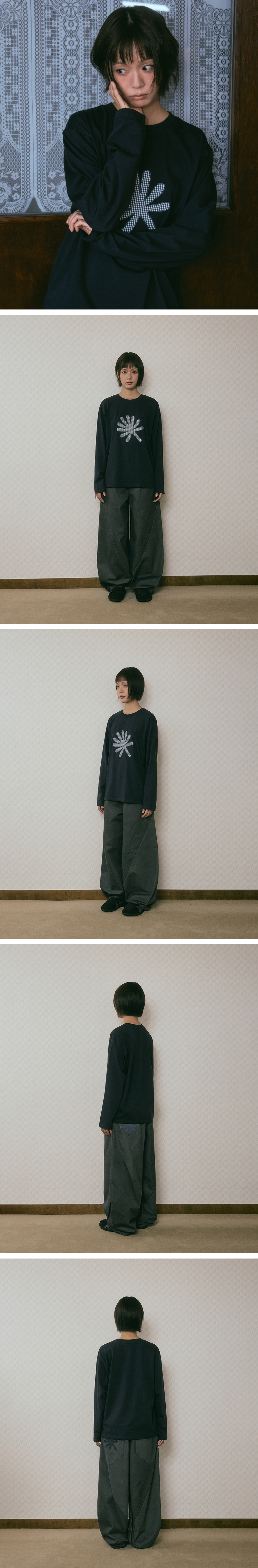 단델 심볼 아플리케 롱 슬리브 네이비