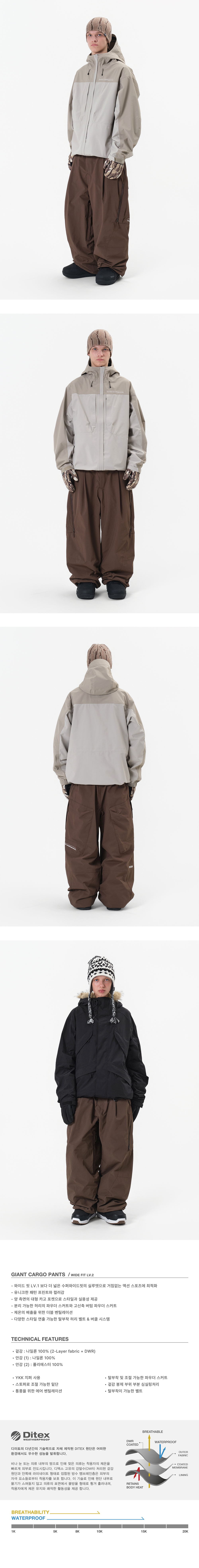 디미토 자이언트 카고 팬츠 와이드 핏 레벨 2 브라운