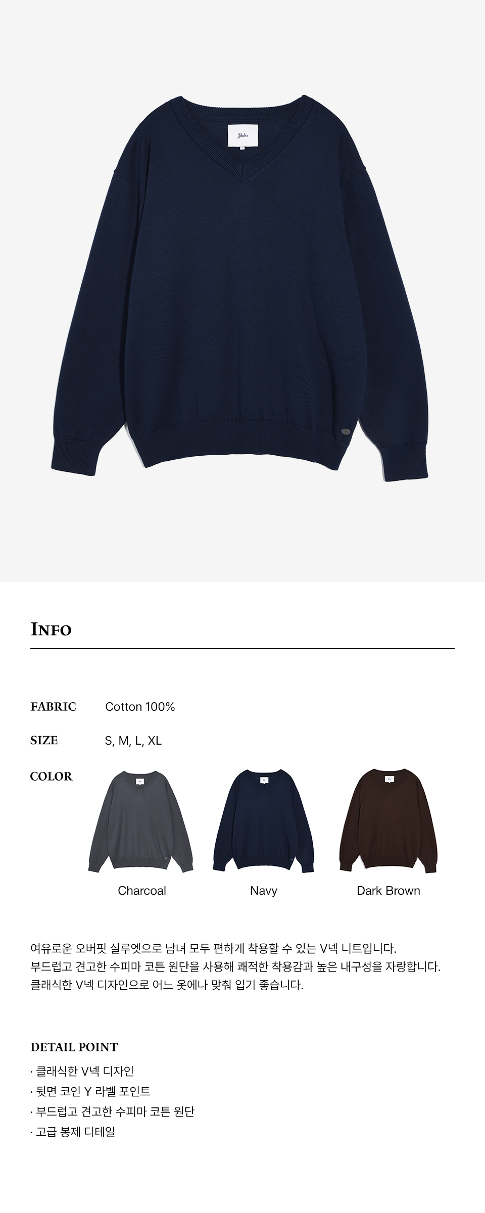 [SUPIMA COTTON] 예일 [SUPIMA COTTON] 에센셜 브이넥 니트 네이비