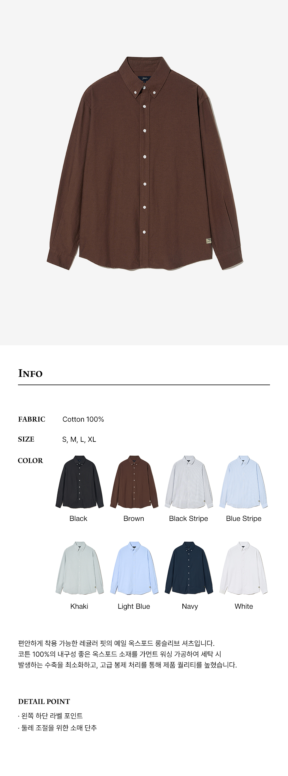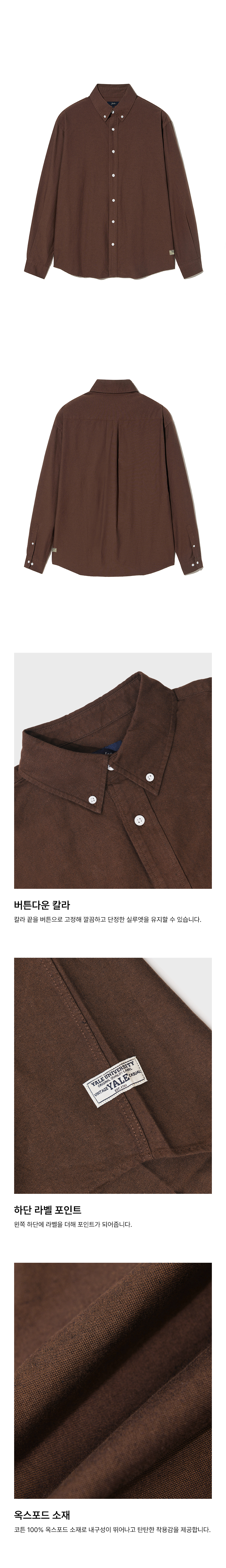 예일 코튼100 레귤러 핏 옥스포드 셔츠_브라운