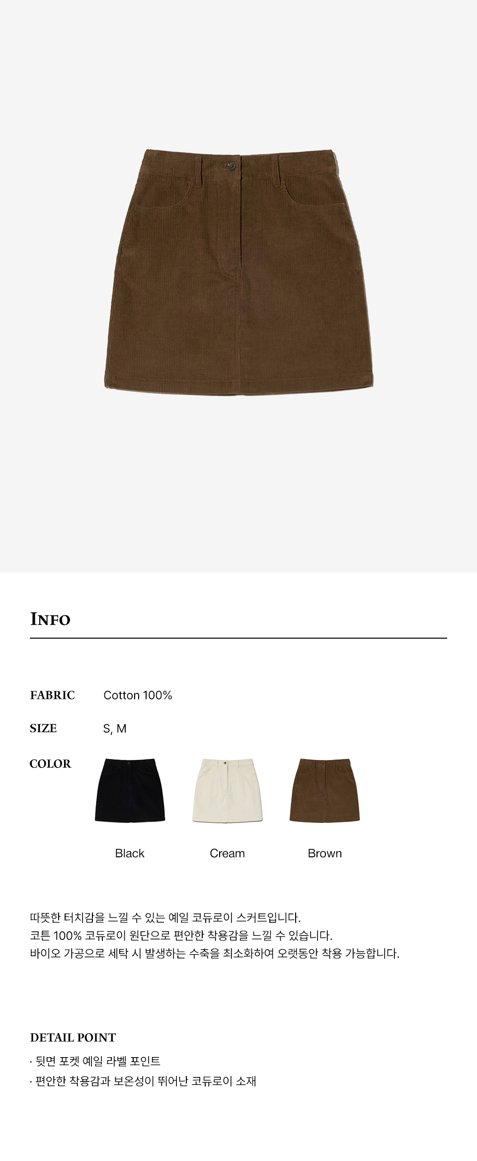 예일 우먼즈 코듀로이 숏 스커트_브라운