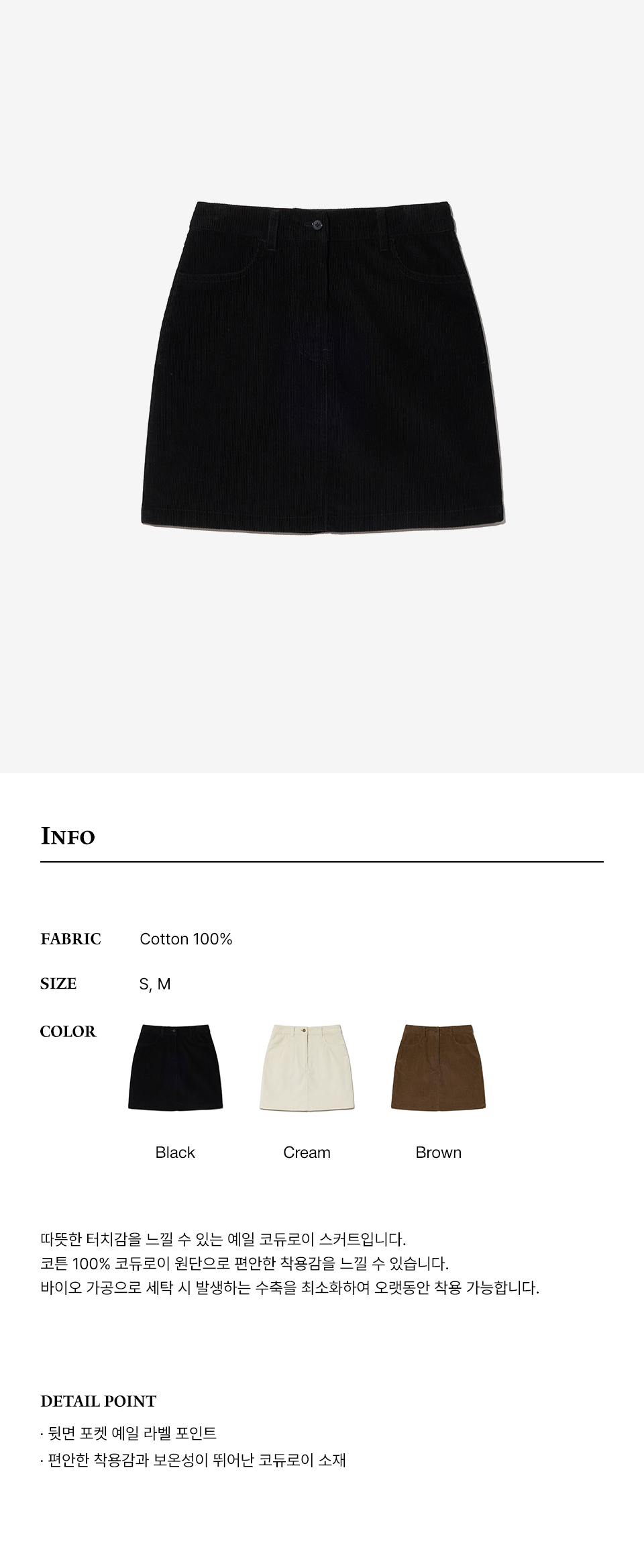 예일 우먼즈 코듀로이 숏 스커트_블랙