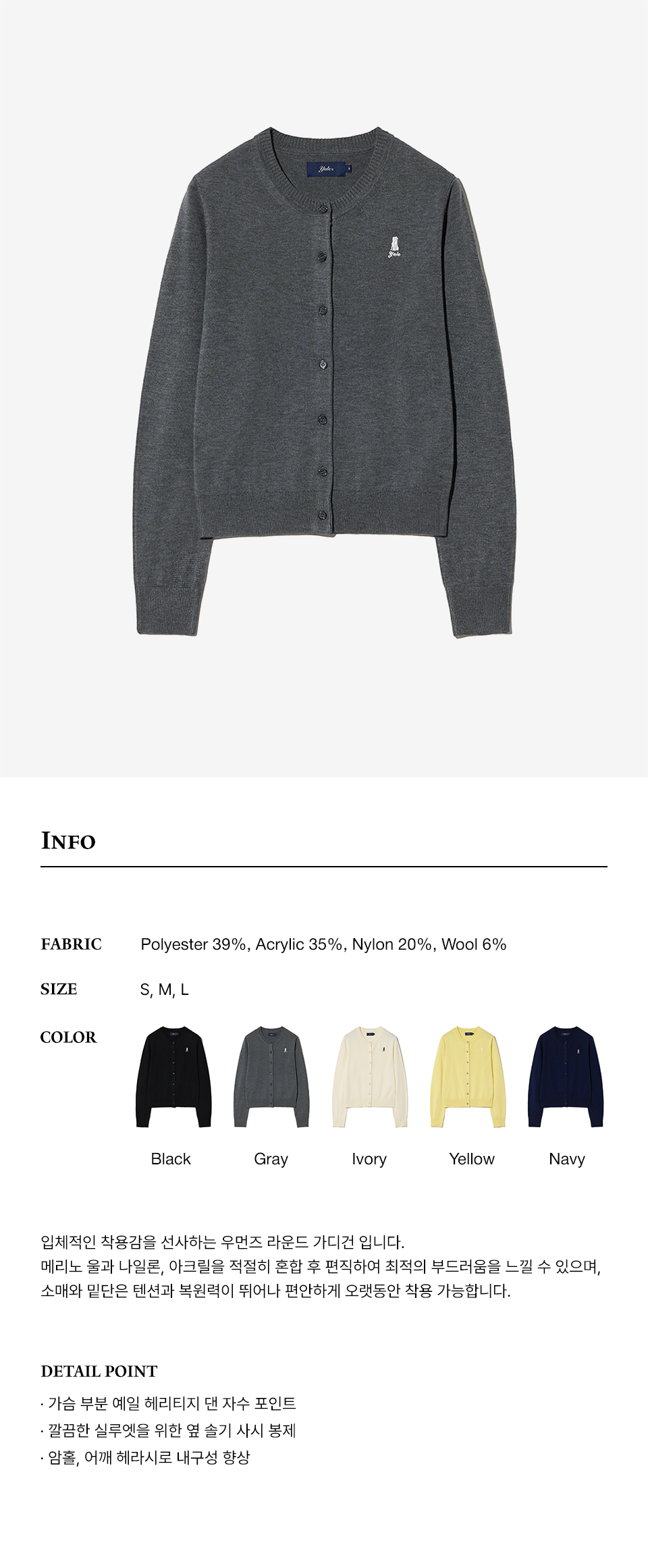 예일 우먼즈 컴포트 울 라운드 가디건_그레이