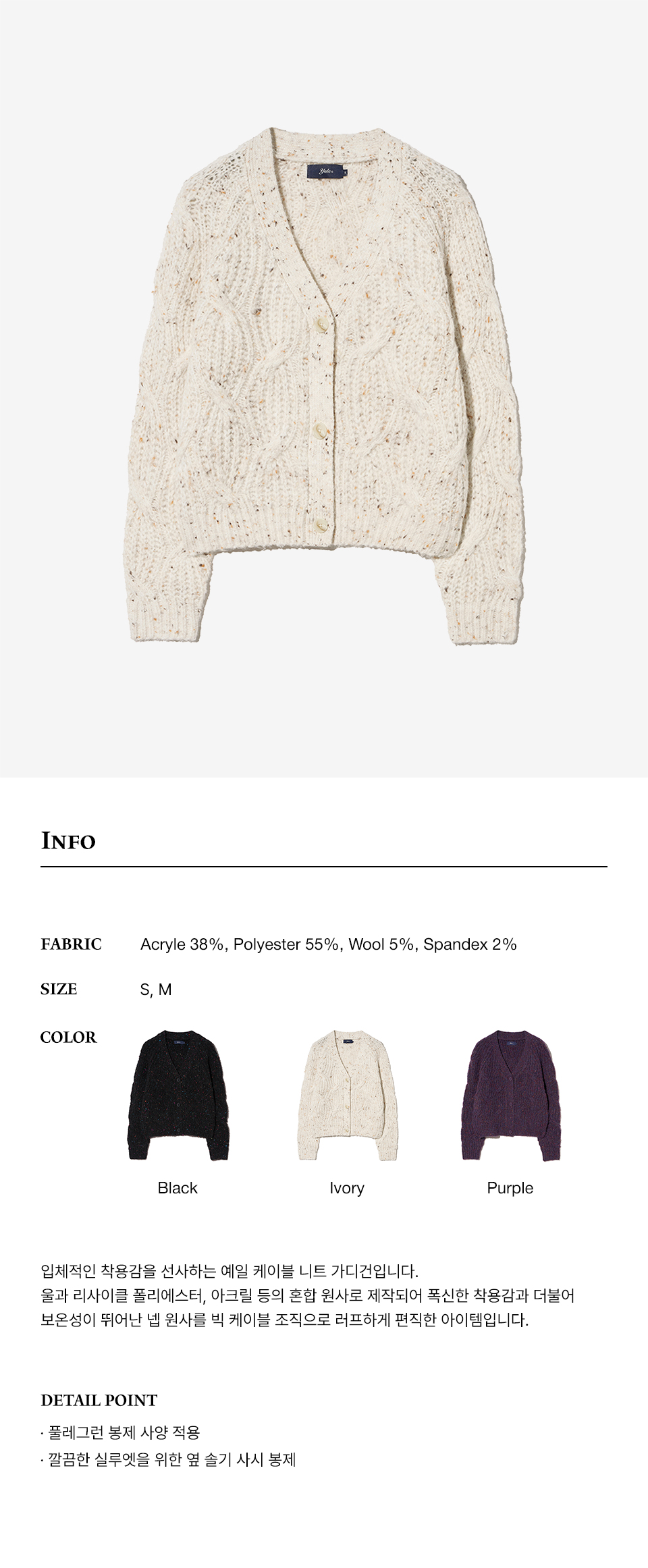 예일 우먼즈 넵 얀 빅 케이블 가디건_아이보리