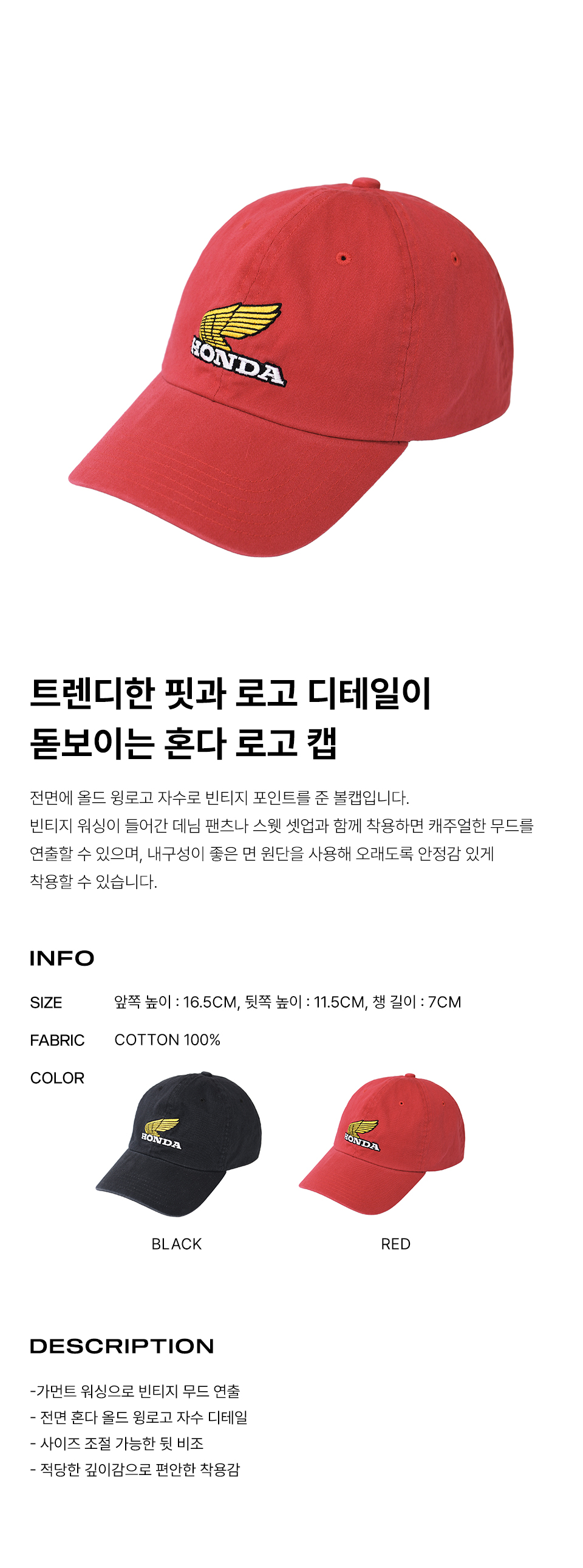 혼다 빈티지 올드 윙 로고 캡 레드