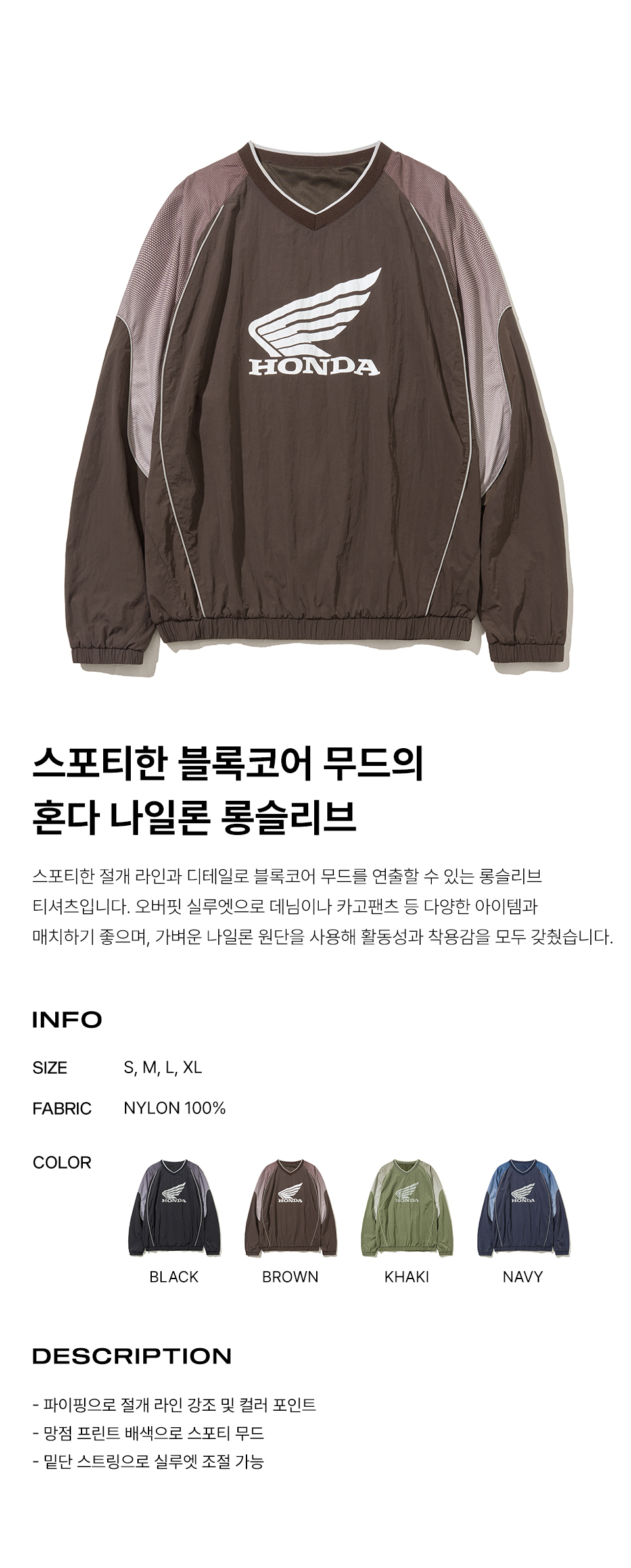 혼다 스피드 트랙 솔리드 나일론 롱 슬리브 브라운