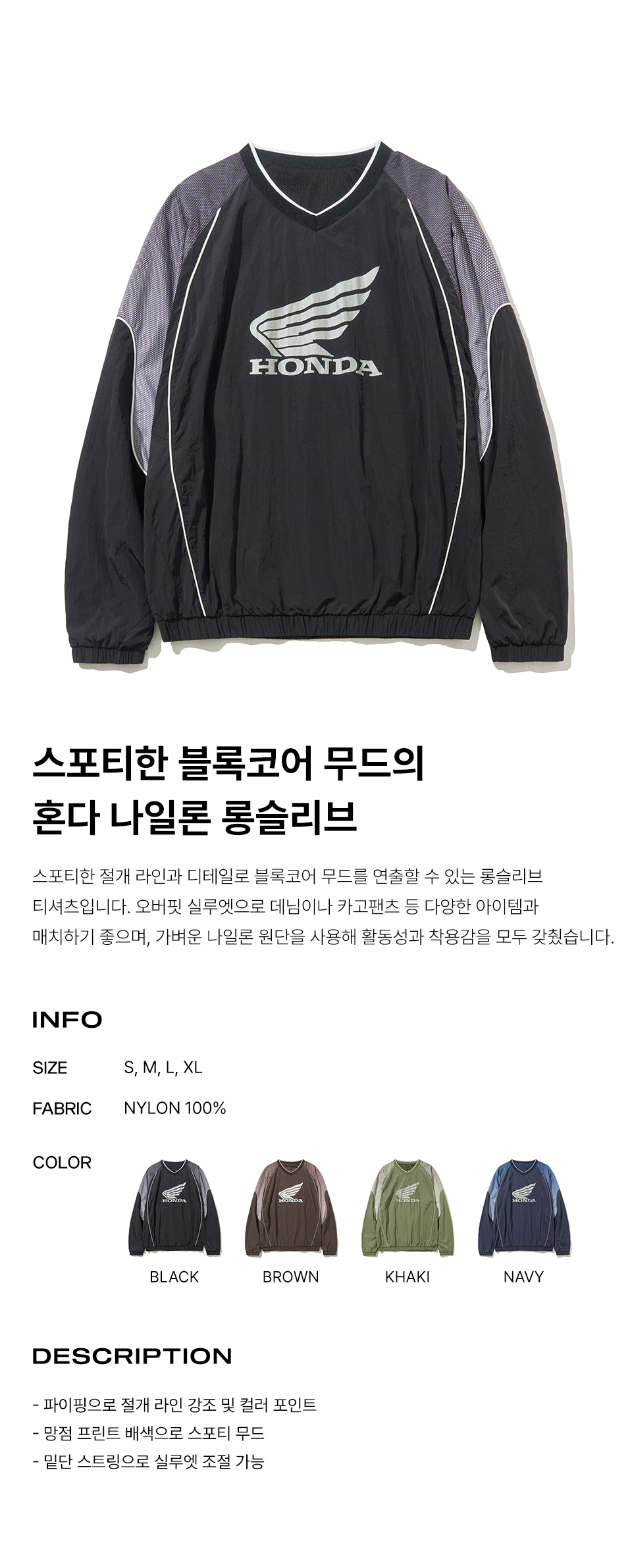 혼다 스피드 트랙 솔리드 나일론 롱 슬리브 블랙
