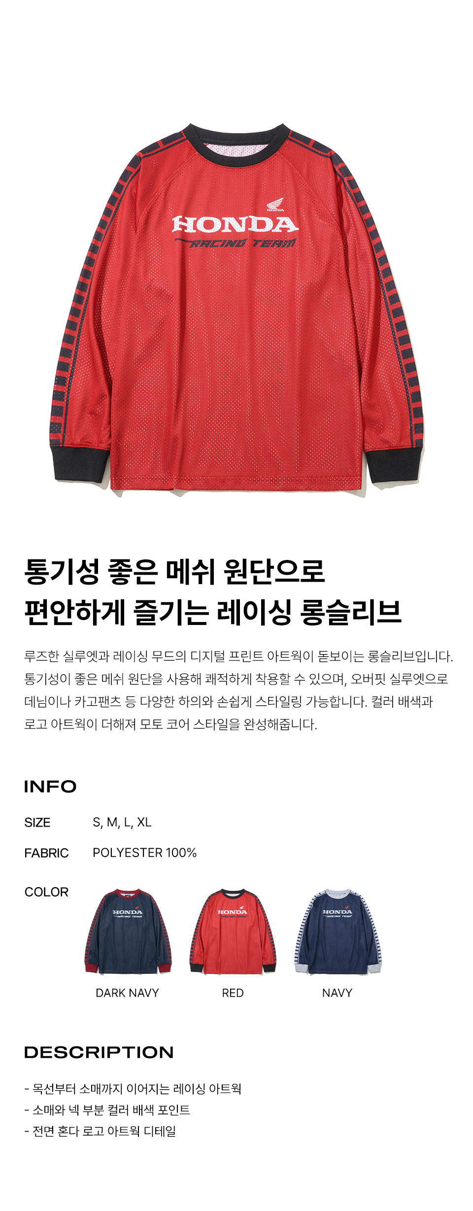 혼다 빈티지 레이싱 메쉬 롱 슬리브 레드
