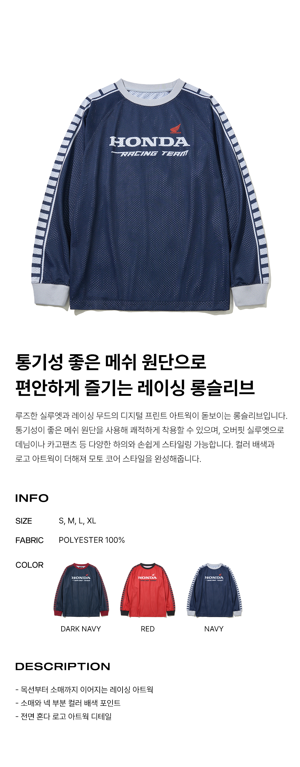 혼다 빈티지 레이싱 메쉬 롱 슬리브 네이비